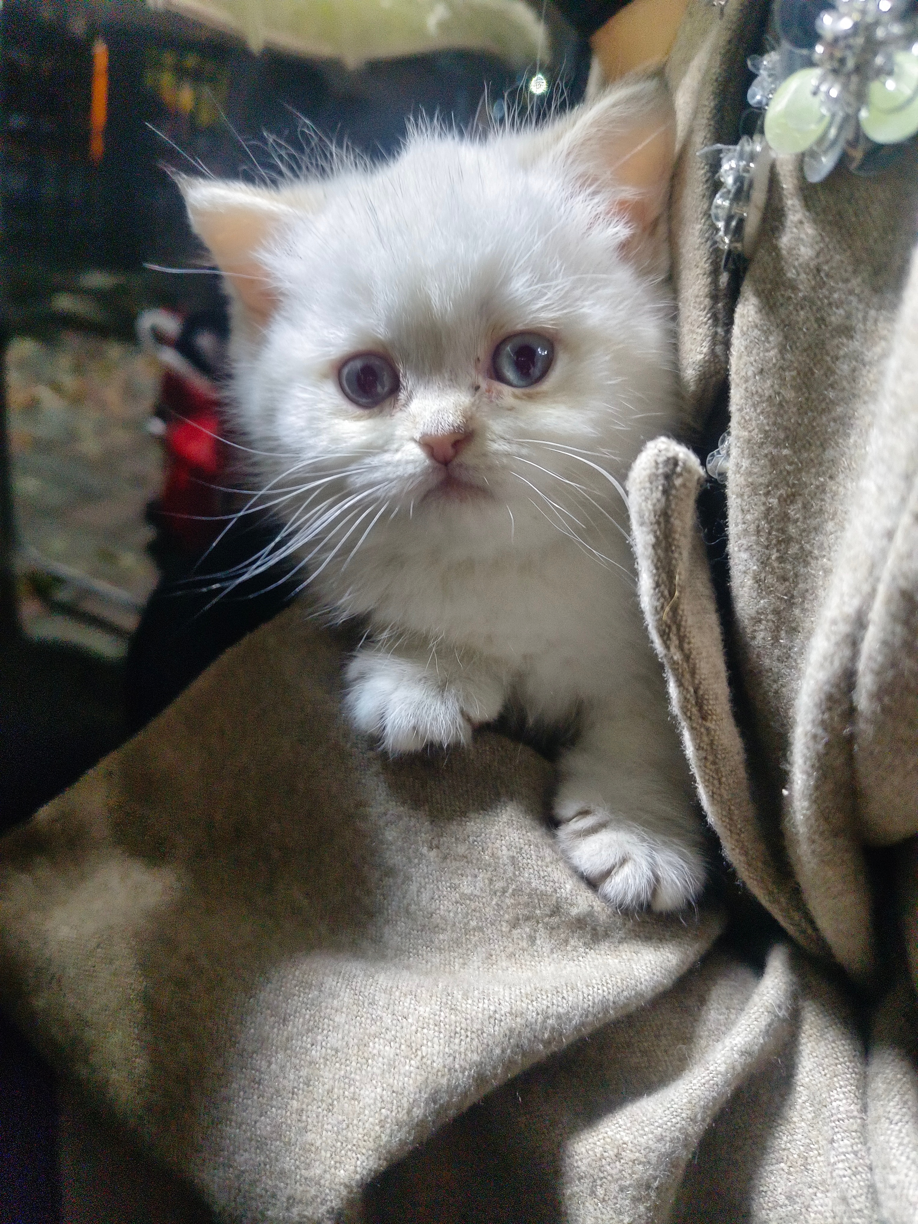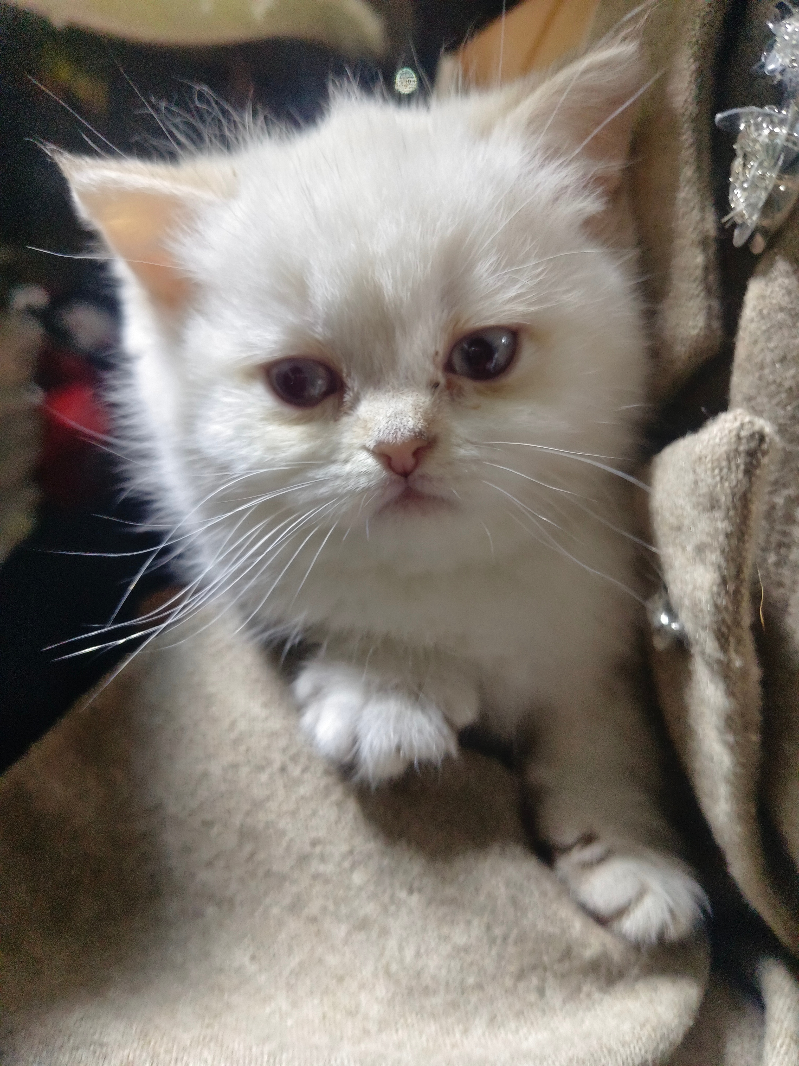这只小猫咪2个月大,日常活泼可爱好动,只要一被抱着,立马乖巧的不得了,像个小宝宝一样。800块一只