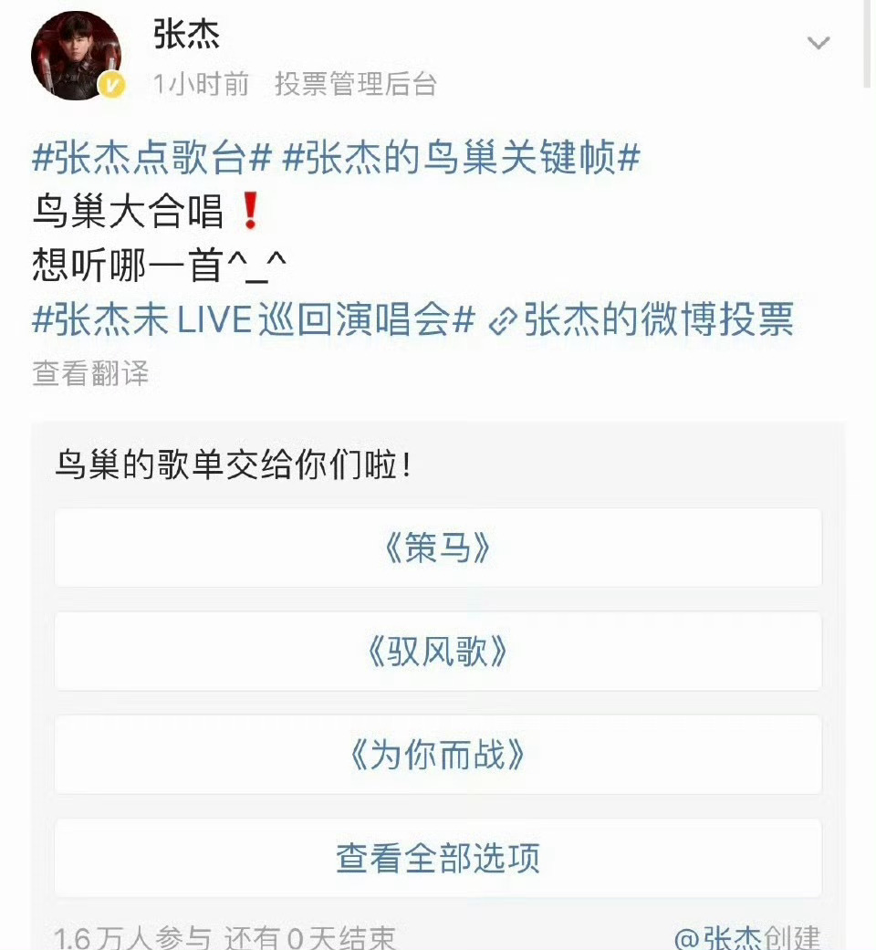 张杰说鸟巢大合唱想听哪一首这个杰哥不要太宠!!问大家鸟巢大合唱想听哪一首,好多想