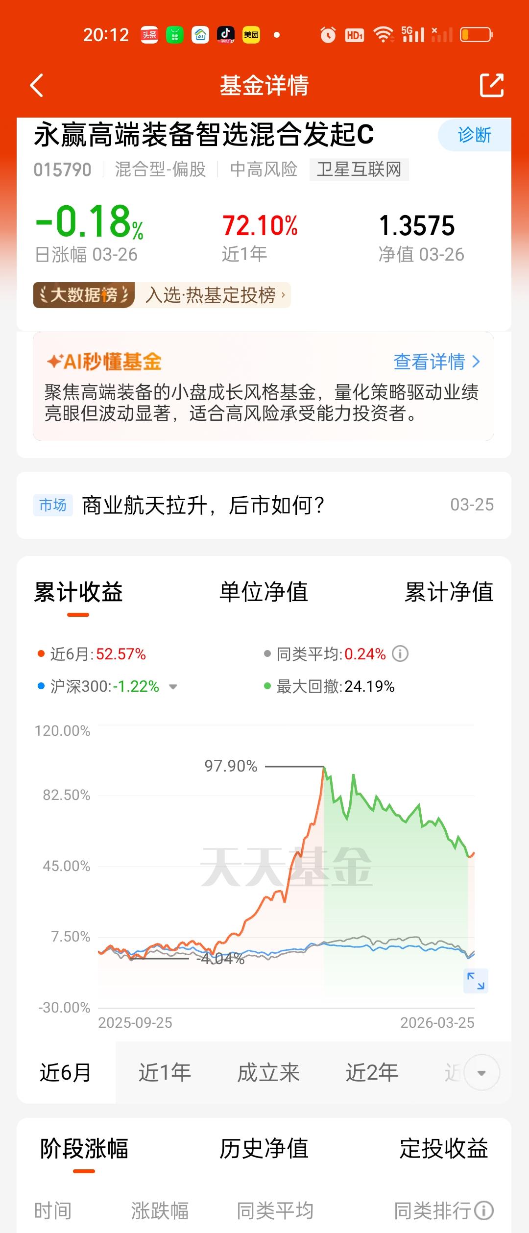 对于场外基金来说,这段时间加仓不需要太频繁。我预计大概率还会磨底一段时间。清明节后回来就会趋于稳定。我认为四月份的行情肯定不差的,最低最低的预期都会把3月份的坑填平。 加仓的节奏和方法,第一,所有T+2,T+3,T+7这类基金全部换到场内操作。因为场外赎回时间长,到账时间慢,严重影响资金使用效率。 其次,很多基金高点下来已经跌了40%以上。你就算买在了超高点的位置,只要中途没有补成重仓,都还比较容易解套,操作很简单,等大盘这次调整完毕以后直接买入现在持有金额的3倍金额就可以了。然后拿着不要动也不要看,一个月,或者两个月以后免手续费卖出就能解套了。甚至还能盈利出来。前提条件是你现在要有足够的资金操作。 你自己看看你持有的基金是不是杀了40%了,是的话就这样办。但万年不涨的僵尸板块不要碰,这方法不适用!以下截图只是举的例子,不代表我看好这些基金。严禁对号入座,你就看你自己手里拿着的被深套的基金跌了40%没有。