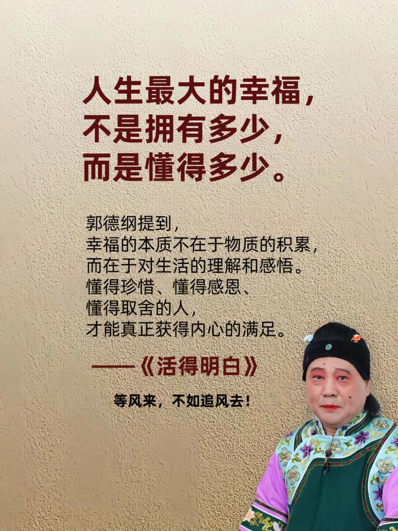 你有没有发现,有些人即使经历了风风雨雨,依然能够笑对生活,不被琐碎的小事困扰,反而活得轻松自在?而有些人,看似光鲜亮丽,内心却焦虑不安,仿佛永远在追赶一个永远也触碰不到的目标。这之间,到底差在哪儿? 活明白,绝不是一味追求所谓的“成功”或“财富”。它更像是一种智慧,一种对生活本质的深刻理解。那些真正活明白的人,懂得放下执念,不被外界的喧嚣左右。他们知道,生活不是一场无休止的竞赛,而是一段需要用心体验的旅程。 他们不盲目追求别人眼中的“完美”,而是学会接纳自己的不完美。你有没有见过这样的人?他们会坦然面对失败,甚至笑谈曾经的挫折,因为他们明白,那些经历才是成长的养分。相比之下,许多人却活在别人的评价里,活在“别人怎么看我”的阴影下,最终迷失了自我。 活明白的人,也懂得珍惜当下。他们不会把幸福寄托在未来的某个时刻,而是学会在平凡中发现美好。也许是一杯热茶的温暖,也许是家人一句关心的话语,甚至是一场雨后的清新空气。正是这些细微的幸福,构成了他们丰富而真实的生活。 更重要的是,活明白的人懂得责任——对自己、对家人、对社会。他们不会逃避问题,也不会一味抱怨,而是积极面对,努力改善自己的生活和周围的环境。这种积极向上的态度,正是他们内心强大的源泉。 你可能会问,活明白真的那么容易吗?当然不容易!但只要你开始思考,开始改变,开始学会放下和接纳,你就已经在路上了。别让焦虑和迷茫绑架了你的生活,别让别人的眼光左右了你的选择。 活明白,不是终点,而是一场持续的修行。你准备好了吗?来,留言告诉我,你觉得自己活明白了吗?或者,你最想放下的那个执念是什么?让我们一起,活得更清醒,更自在!活明白了 真实生活 活得明白