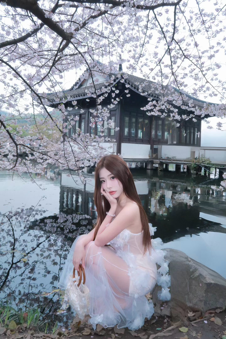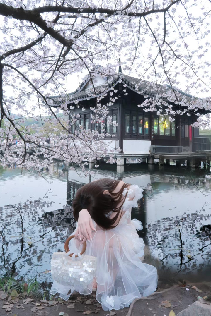 与春天撞个满怀🌸风已带春的味道,我于湖边樱花树下,与满枝温柔相拥。简单棕调