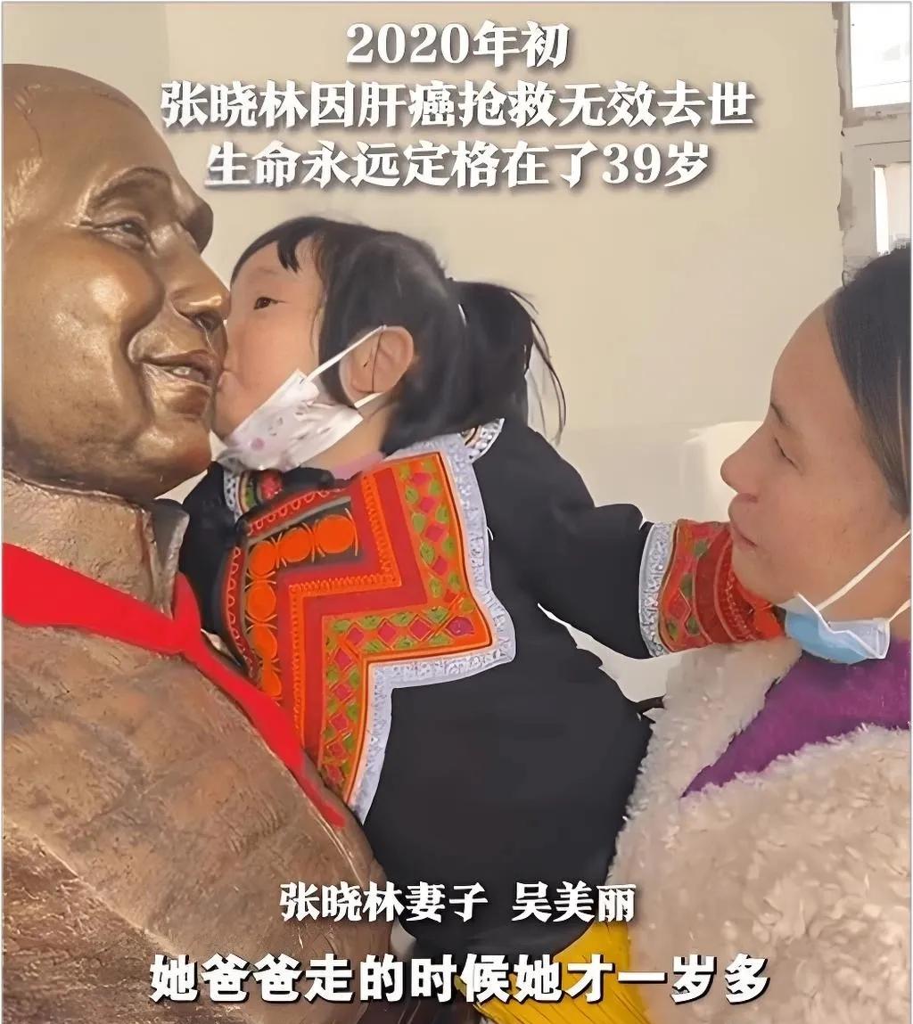 3岁女孩大凉山抱石像喊爸爸,真相全网破防,平凡英雄的坚守太戳心 2021年,四川成都1女子带着3岁的女儿到大凉山景区。谁料,两人走到一座石像前,女儿忽然挣脱妈妈怀抱跑过去抱住石像,小脸紧紧贴在石头上,无论妈妈怎么劝说,都不松手。就在众人不解时,女孩哽咽着说道:“这是我爸爸”,真 相让全网泪目! 当时景区里人来人往,不少游客都被这一幕吸引,纷纷停下脚步围观。大家看着小女孩死死搂着冰冷的石像,小身子微微发抖,眼泪顺着脸颊往下淌,打湿了石像的衣角,都觉得格外不解,有人小声嘀咕,说孩子是不是认错了,哪有把石像当成爸爸的道理。 女孩的妈妈吴美丽急得眼眶发红,蹲在一旁一遍遍轻声哄劝,伸手想把女儿拉回来,可孩子的小手攥得紧紧的,怎么都不肯松开,嘴里反复呢喃着“爸爸,抱抱”,声音软糯又带着止不住的委屈,听得周围人心里直发酸。 没人知道,这座看似普通的石像,刻着的是女孩真正的父亲,名叫张晓林,一个把六年青春全都奉献给大凉山的平凡好人。张晓林是江苏如皋人,2014年之前,他原本有着安稳的生活,经营着自己的小生意,日子过得平淡又幸福。 一次偶然的自驾旅行,他路过四川大凉山,看到山里的孩子因为没有像样的学校,只能在破旧漏风的土坯房里读书,有的孩子甚至连课本都凑不齐,每天要走好几公里山路才能上学,这一幕深深刺痛了他的心。从那以后,他毅然放下手头的生意,只身留在大凉山,一头扎进了公益助学的事业里。 这一留,就是整整六年。六年时间里,张晓林四处奔走募资,省吃俭用,把所有精力和积蓄都投入到修建希望小学上。 他走遍大凉山的深山村落,挨家挨户了解孩子的上学需求,亲自对接施工、采购物资,哪怕遇到山路崎岖、天气恶劣,也从来没有停下脚步。 身边有人劝他别这么拼,说公益事难做,可他总是笑着说,大凉山的孩子需要读书,能让他们有学上、有书读,再苦再累都值得。 六年里,他一共筹资修建了39所希望小学,让上万名山区孩子告别了破旧的学堂,坐在宽敞明亮的教室里学习,当地的孩子们都亲切地喊他“张爸爸”。 常年的奔波劳累,加上饮食不规律、休息不足,张晓林的身体渐渐垮了。2020年正月初七,年仅39岁的他,因肝癌抢救无效永远离开了人世,而那时,他的女儿培培还不到两岁,连爸爸完整的模样都记不清,更没有好好抱过爸爸几次。 吴美丽看着年幼的女儿,强忍悲痛独自撑起家庭,她不敢在孩子面前过多提起爸爸的离去,只能把爸爸的照片珍藏起来,偶尔指着照片告诉培培,爸爸去了大凉山,去守护那里的小朋友了。 小小的培培似懂非懂,却把爸爸和大凉山牢牢记在了心里,每次看到爸爸的照片,都会伸手轻轻抚摸,念叨着想爸爸。 张晓林去世后,他在大凉山的公益伙伴们,感念他的付出与坚守,特意为他塑造了这尊石像,安放在大凉山景区里,让所有人都能记住这位为山区孩子奉献一切的好人。 2021年,吴美丽想着女儿渐渐长大,该带她去看看爸爸曾经坚守的地方,便带着3岁的培培来到大凉山。 她本以为孩子年纪小,早已记不清爸爸的模样,没料到刚走到石像前,培培就一眼认出了这是自己日思夜想的爸爸,挣脱怀抱就扑了上去。 孩子的直觉从来不会骗人,她或许记不清爸爸说话的声音,记不清爸爸拥抱的温度,可血脉里的牵绊、心底深处的思念,让她在看到石像的那一刻,就确定这是自己的爸爸。 她抱着冰冷的石像,就像抱着全世界最温暖的依靠,不肯撒手,不愿离开,那一句哽咽的“这是我爸爸”,道尽了年幼孩子对父亲所有的思念,也戳中了无数网友心底最柔软的地方。 这段视频被现场游客发到网上后,很快刷屏全网,无数网友看得泪流满面。大家纷纷留言,心疼年幼的培培,敬佩默默奉献的张晓林,有人说“平凡人做着不平凡的事,他是大凉山的英雄,也是孩子永远的爸爸”,还有人安慰吴美丽,愿母女二人往后平安顺遂,愿张晓林的善意能一直被铭记。 张晓林用生命点亮了大凉山孩子的希望之路,却错过了女儿成长的每一个瞬间,没能陪她长大,没能给她一个完整的拥抱。 可他的爱从未消失,化作了大凉山的一座座希望小学,化作了这尊静静伫立的石像,永远守护着山里的孩子,也永远被自己的女儿记在心里。 真正的英雄,从不是遥不可及的身影,而是像张晓林这样,心怀善意、默默坚守,用一己之力温暖他人的普通人。 他的故事,让我们看到了人间大爱,也读懂了亲情与奉献的重量。各位读者你们怎么看?欢迎在评论区讨论。