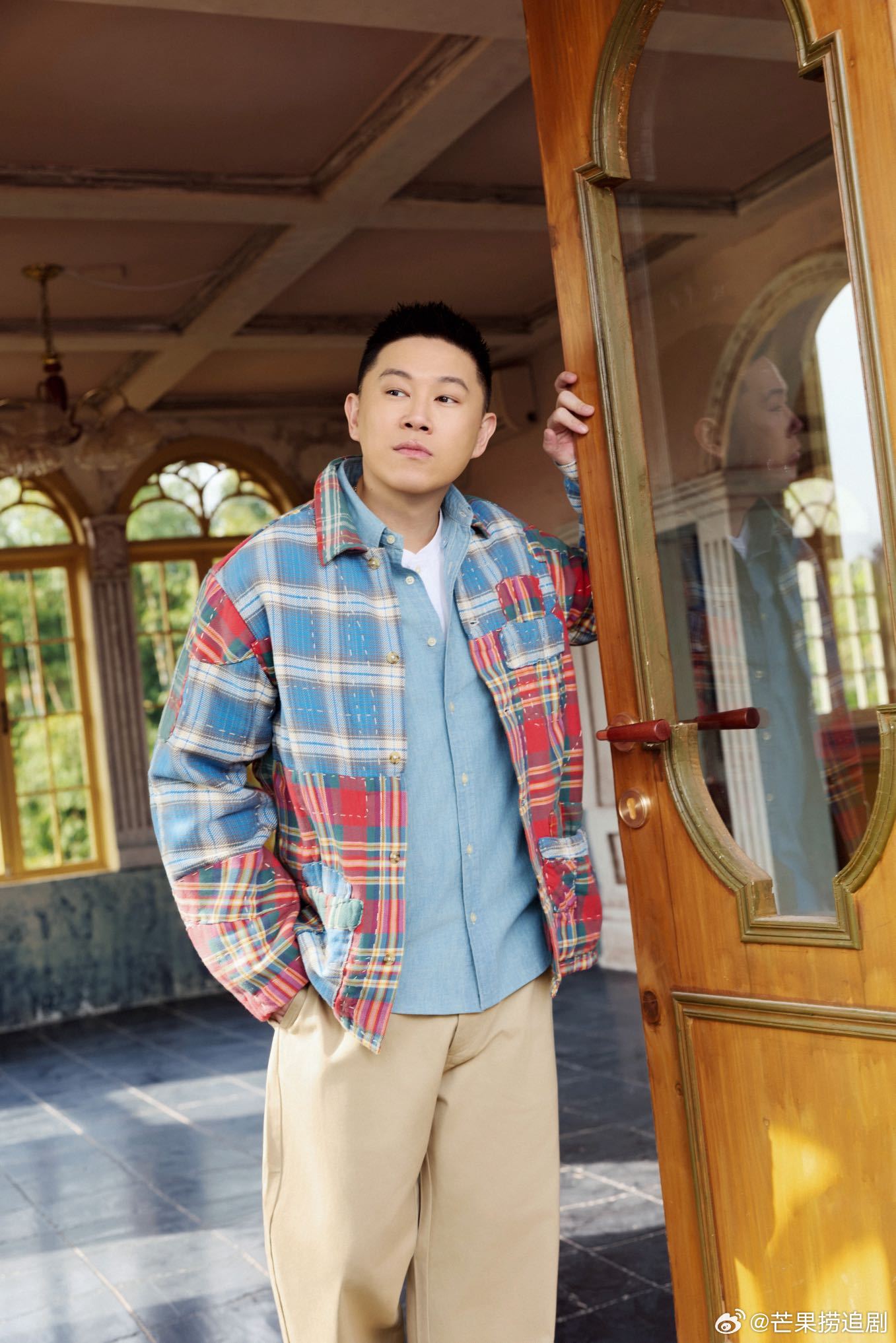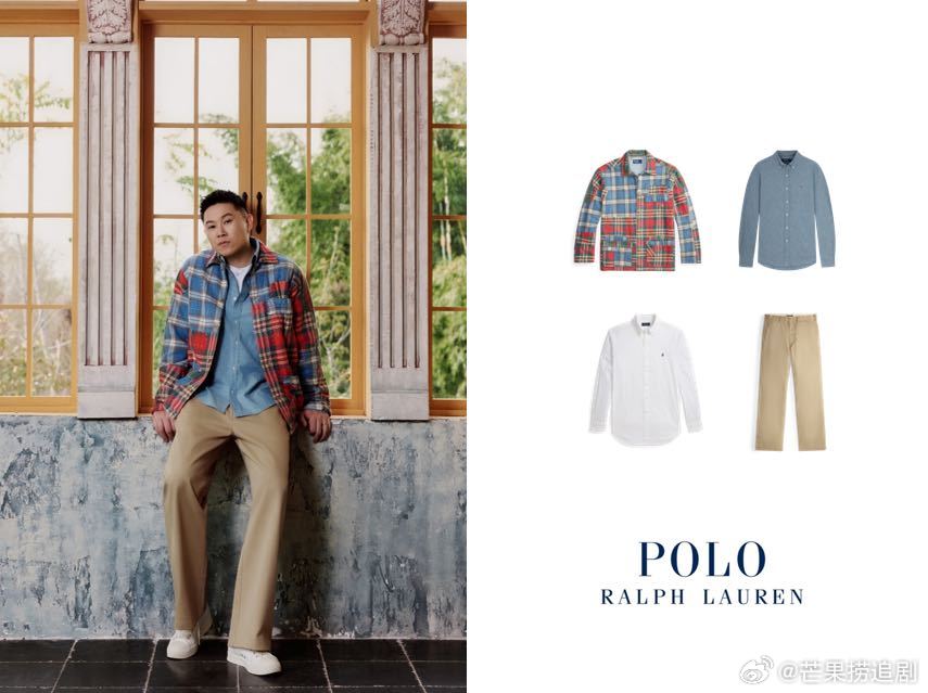 一套经典叠穿造型,卡其色裤装搭配纯白衬衫,外搭牛仔衬衫与格纹外套,层次分明尽显随性复古;一套利落牛仔套装,简约白衬衫打底,以说唱王者的绝对松弛诠释品牌优雅、自由、舒适的核心格调。