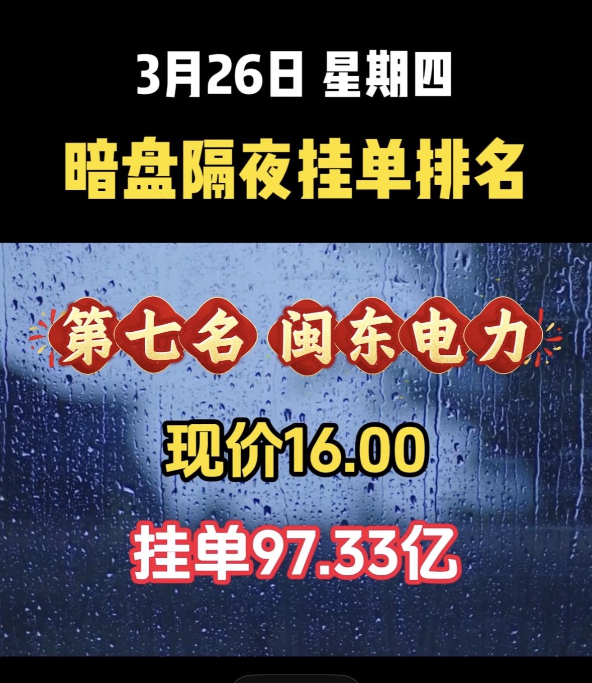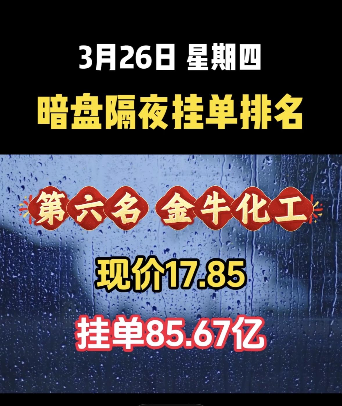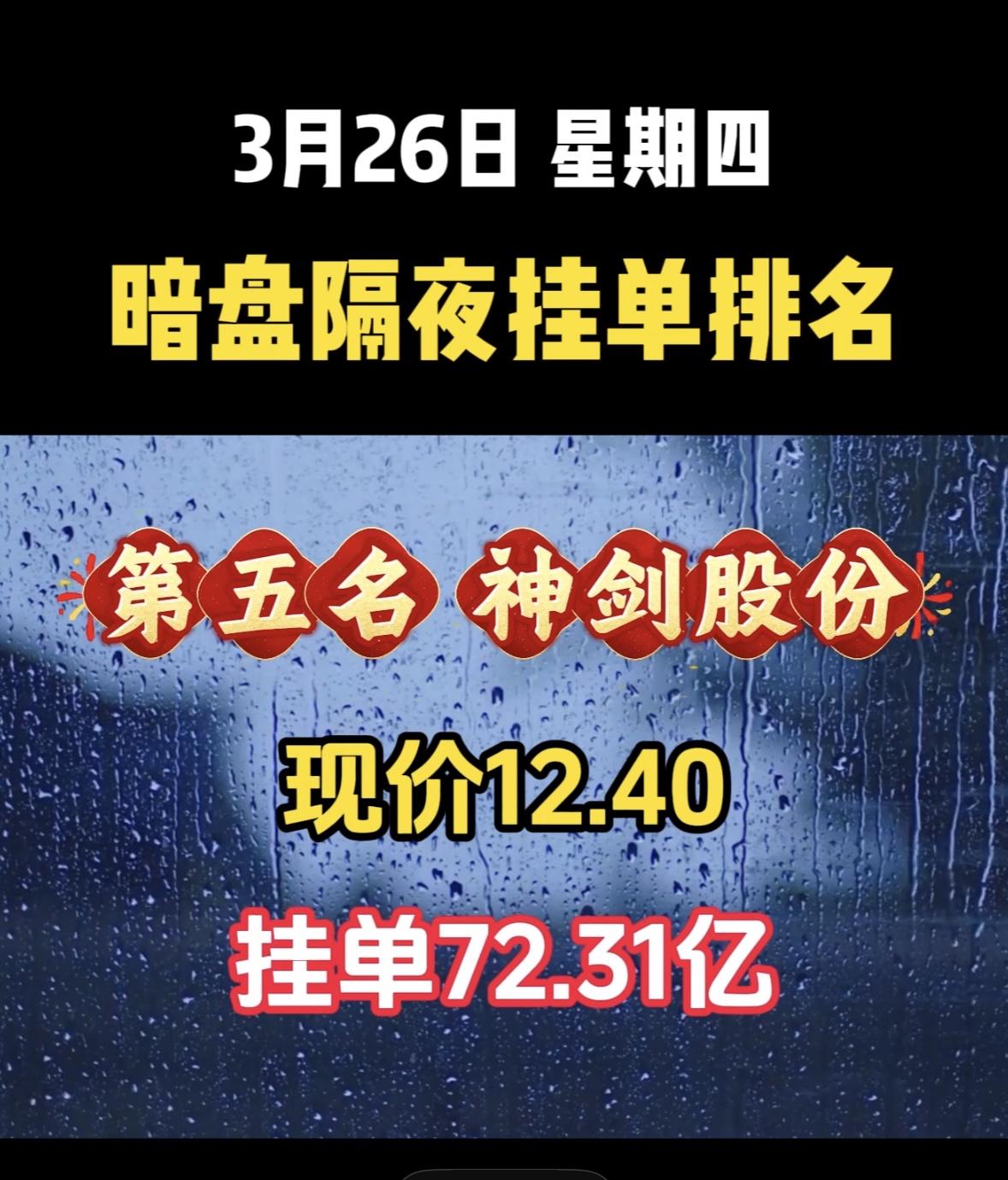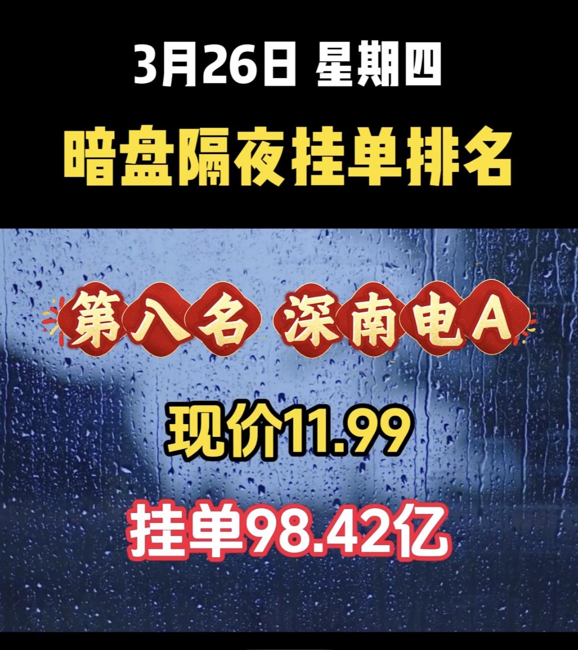 3月27日周五暗盘隔夜挂单排行榜揭晓 深南电A这情况有点意思啊!现在股价11.99,挂单居然高达98.42亿,这数字看着就震撼。而且暗盘隔夜还排到了第八,说明不少人在关注它。这么大的挂单量,背后肯定有大资金在运作。也许是有什么利好消息,吸引了众多投资者。不过股市这东西变幻莫测,挂单多不代表股价就一定会涨。说不定这只是一场资本的博弈,小散们可得谨慎点,别一不小心就成了被收割的韭菜。还是得好好研究研究,再决定要不要入场。