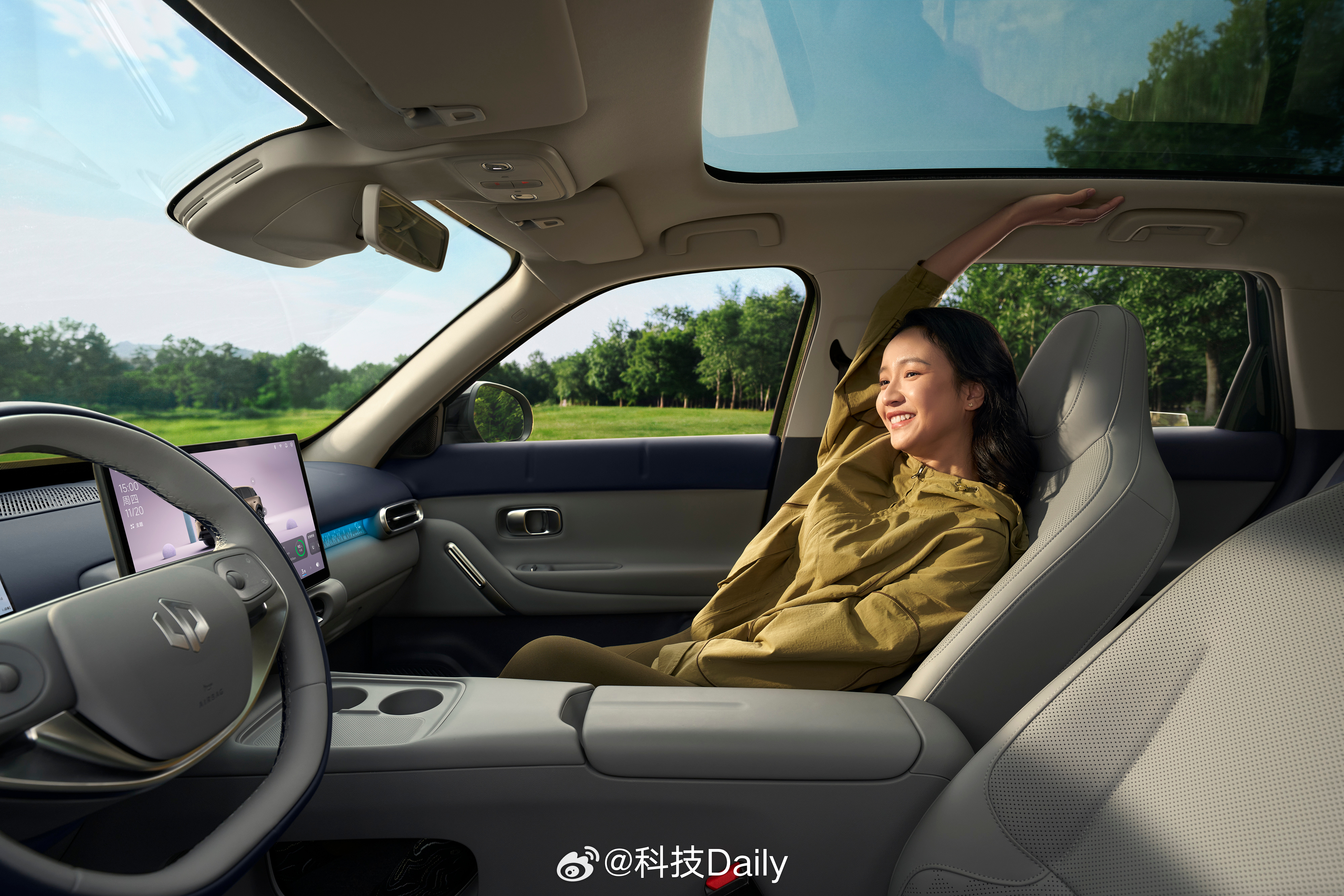 相对的零跑也带来了橡果棕、海苔绿、莓莓蓝、苔原灰、星河银、摩根粉六大自然灵感车色,组合1.55㎡超大全景天幕,拥有99.9%紫外线隔绝率并标配100%遮光电动遮阳帘,再加上2.63㎡的座舱内部软包覆盖,主打一个真有品质。