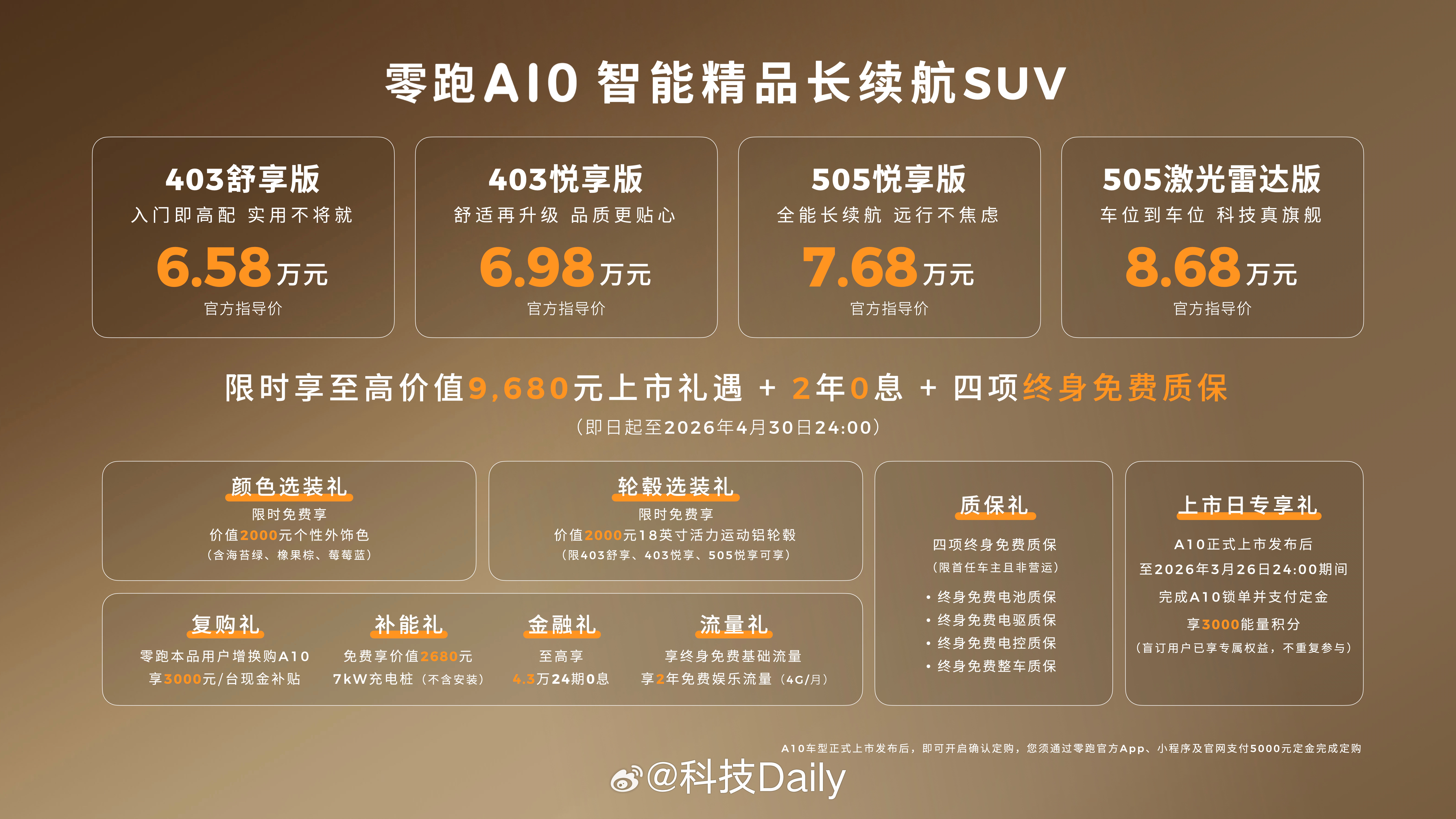 6.58万元起 零跑A10开启激光雷达8万时代智能精品长续航SUV好车好价。