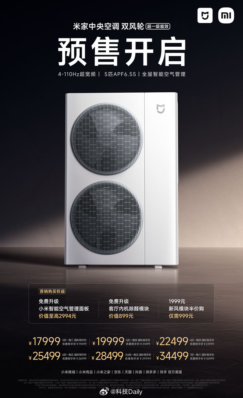 米家中央空调 双风轮 新品登场,档性能最强、最省电、最智能的双风轮中央空调,中央空调选米家准没错~我们家空调圈全是米家,之前装修有个柜机是别的品牌的现在用起来都后悔了,准备有机会买个米家超一级能效升级一下,如果最近在装修提前布局米家中央空调就好,10年免费包修、安装服务免费,靠谱!