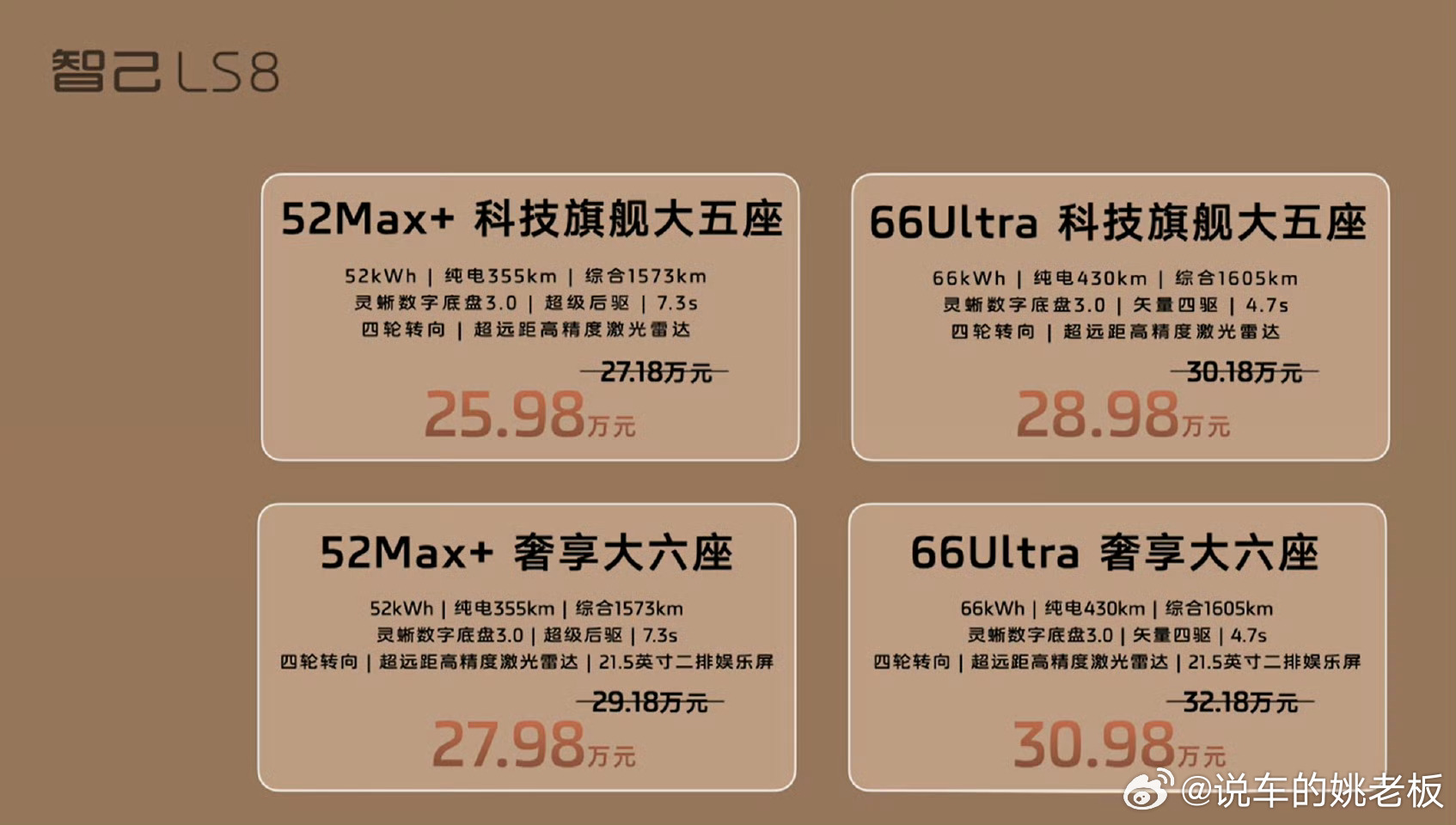 兄弟们,智己LS8正式开启预售了,30万内旗舰SUV实力拉满!全系标配百万级灵蜥数字底盘3.0,标配全线控底盘➕四轮转向,5米车身转弯半径仅4.85米,操控灵活。