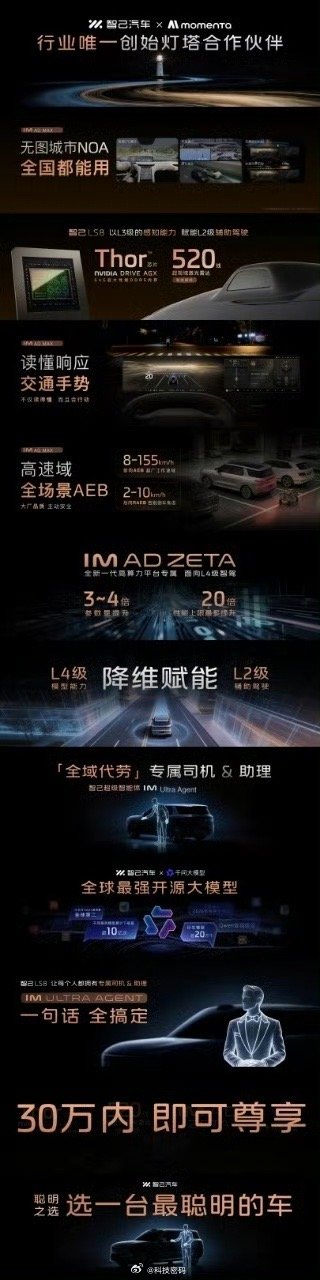 智己LS8震撼预售25.98万元起智己LS8正式开启预售,25.98万元起,给30万内家庭SUV市场再添一台科技旗舰。全系标配灵蜥数字底盘3.0,同级唯一双向24°智慧四轮转向,让5米大车开出小车般的灵活,百万级底盘质感轻松拿捏。空气悬挂加持,零百加速4秒级,百公里刹停仅34米出头,好开更安全。Thor芯片+激光雷达加持,智能驾驶稳稳在线,一句话就能让超级智能体帮你搞定各种琐事。Ultra wide³超宽体座舱,五座六座随心切换,B&O音响、按摩座椅、地暖全安排上,后备箱能装下6个28寸行李箱。恒星超级增程系统,综合续航高达1605公里,再配上800V超快充,动力足、能耗低,兼顾得明明白白。航空级安全配置、大厂品质全程兜底,省心又可靠。不到30万能给到这种配置,真的够顶了。同样在挑家庭SUV的朋友,你们选车最看重什么?