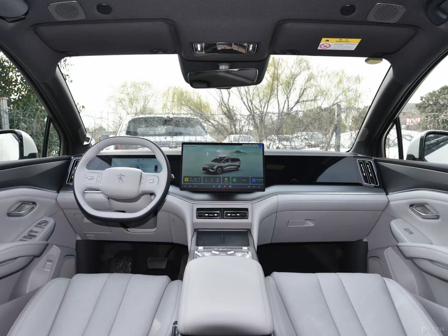 新车全系标配 15.6 英寸中控屏、四音区语音交互;高配车型配备女王副驾(通风 / 加热 /腿托 / 按摩)、一体式智能冷暖冰箱、迪声音响系统“天空音响”(16 扬)等,中央扶手处配有双手机无线充电板、置物杯架等,设有物理按键和旋钮,还提供了多功能拓展接口。