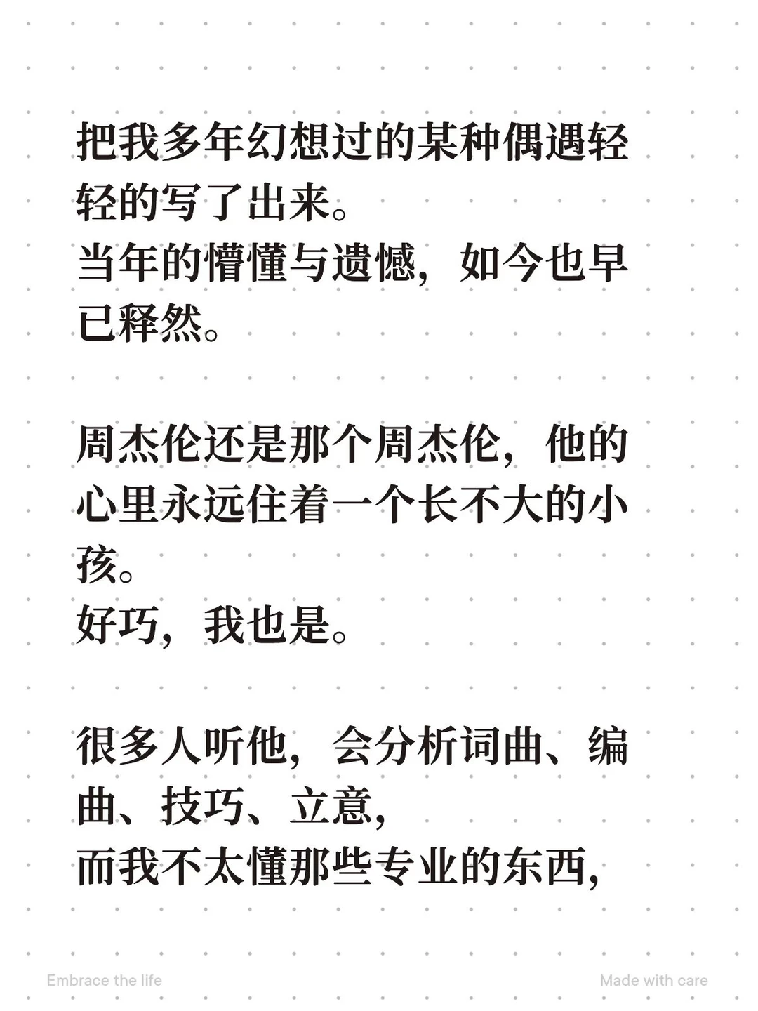 我只是单纯地,透过他的音乐,触摸到他最真实、最柔软的情感世界。