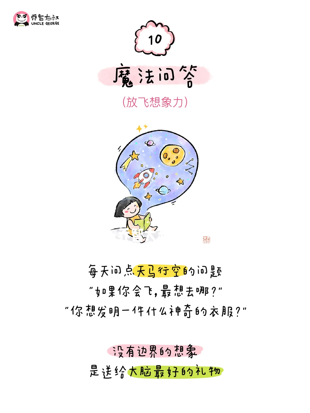 聪明孩子的背后 都有一个发达的「总指挥部」 ——大脑前额叶🧠 它负责 ✅ 专注、记忆、逻辑 ✅ 控制情绪与做出决策 堪称大脑的「CEO」👍 促进它发育的最好方式 就是好玩又用心的亲子游戏 10个小方法🎈 玩法简单,一起来试试