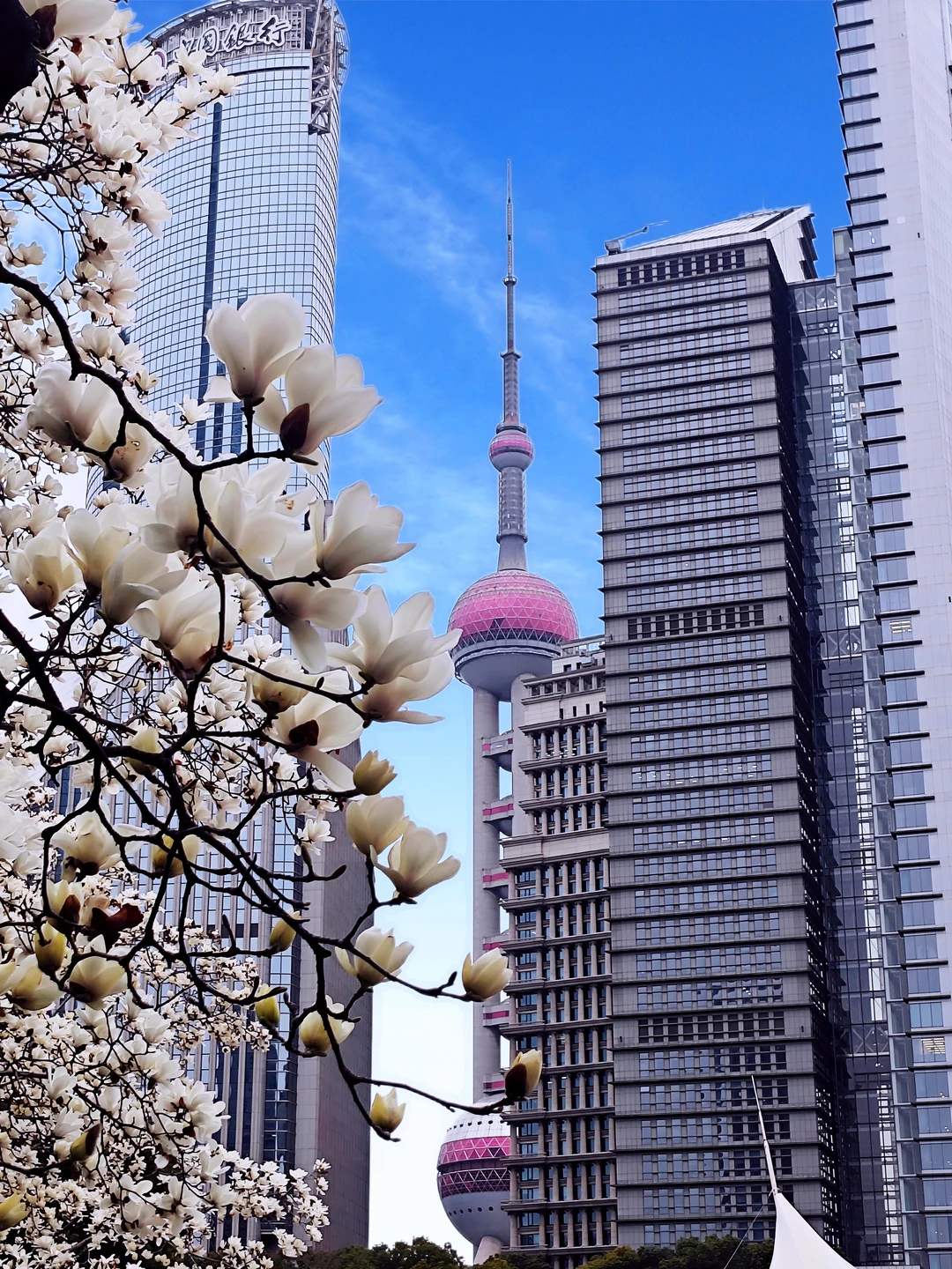3 月正是白玉兰的盛花期!陆家嘴滨江的玉兰树开得满枝雪白,大朵大朵的玉兰花衬着摩天大楼,是独属于上海的春日浪漫。地铁口的玉兰大道,不用找角度,随手拍都是干净治愈的春日大片