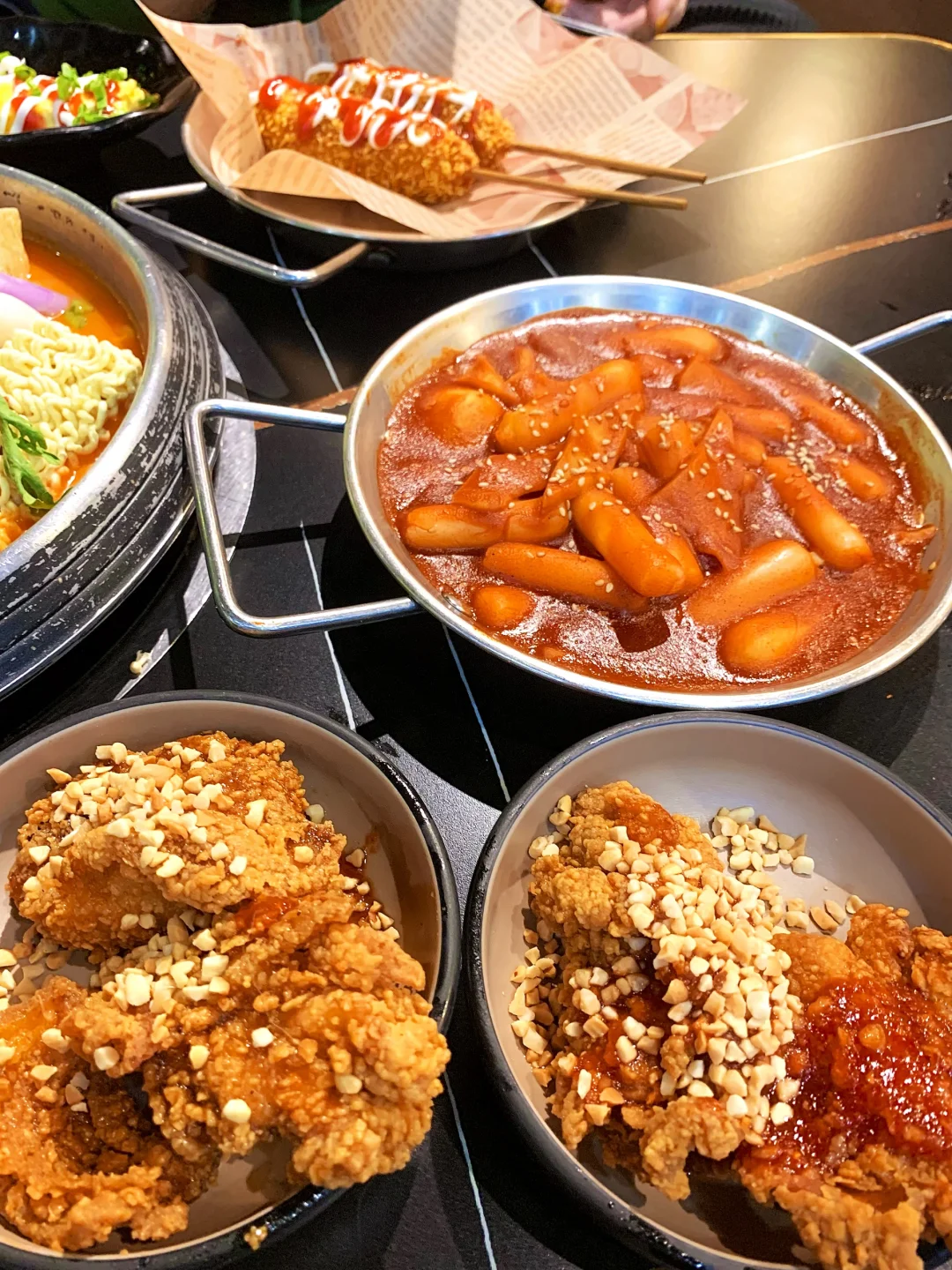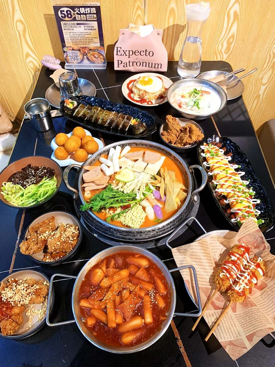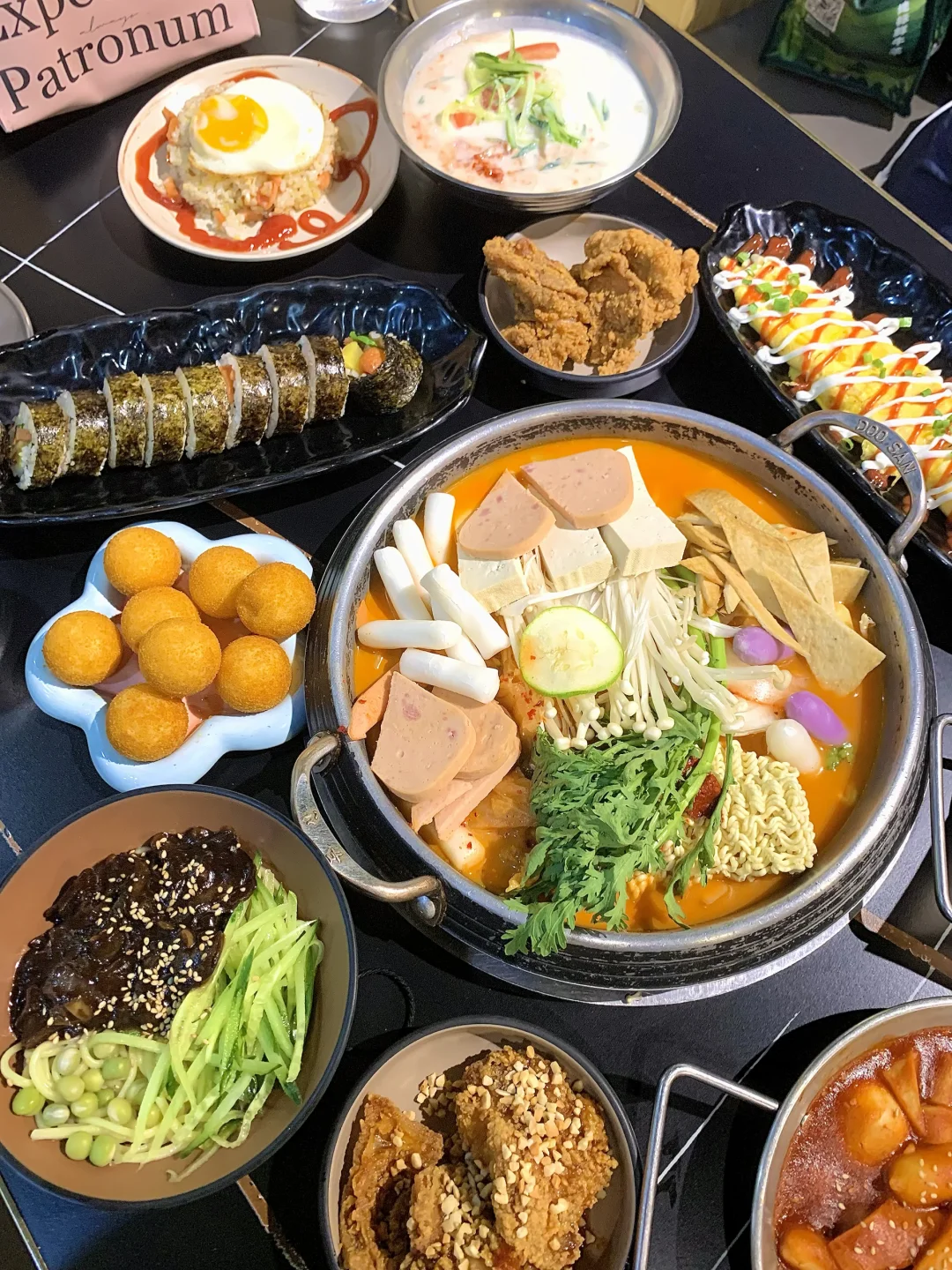 韩式炸鸡、部队火锅、石锅拌饭、嫩豆腐汤、炸酱面、豆浆冷面、各种韩式小菜小吃全都有