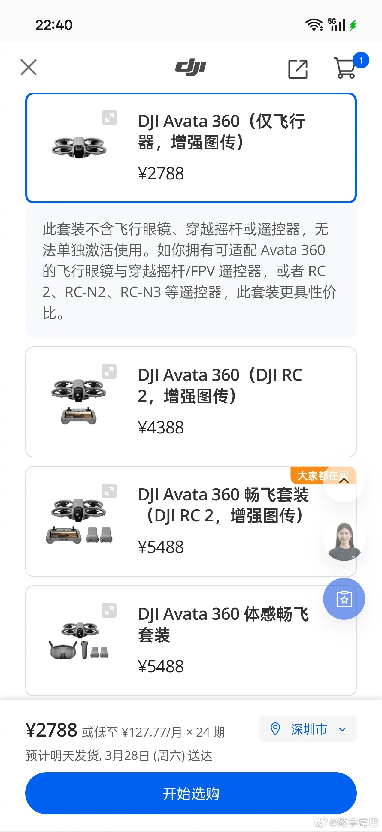 单机身 2788 元的大疆全景无人机 Avata 360,这价格神挡杀神了吧