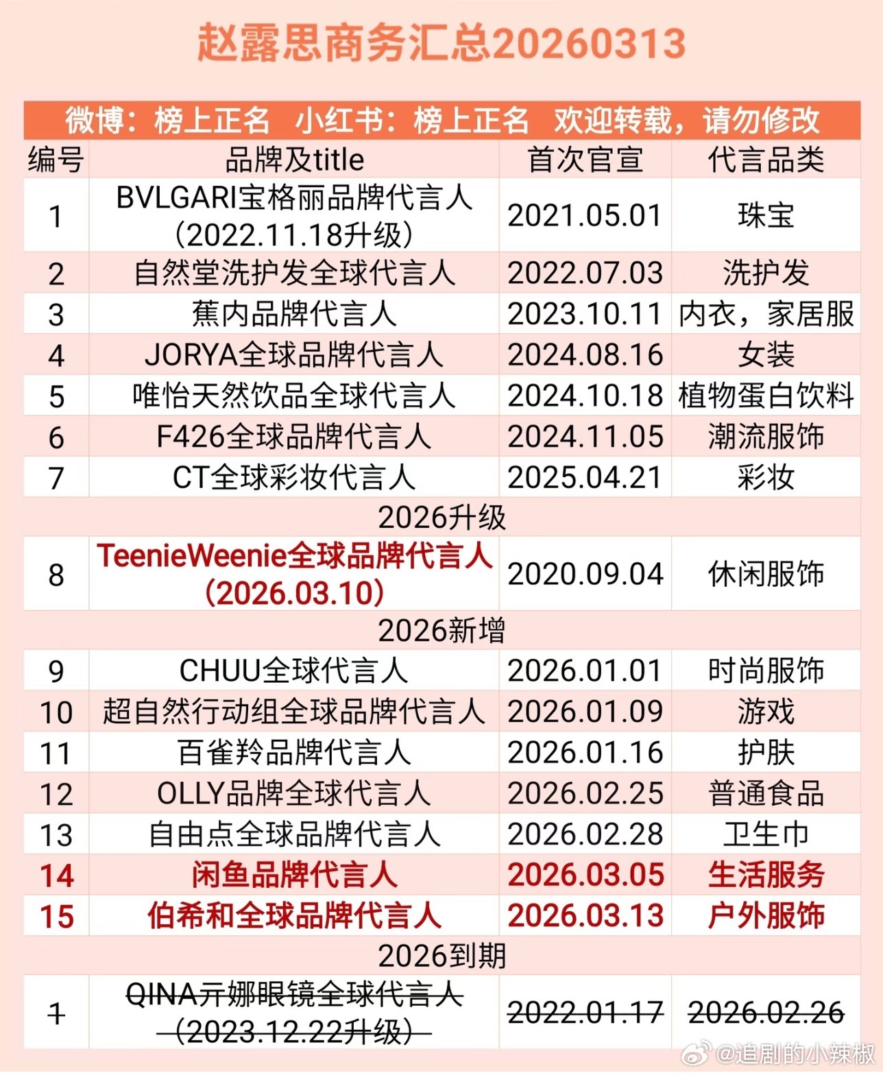 还有谁不知道赵露思26年宣了10个新代言啊太红了