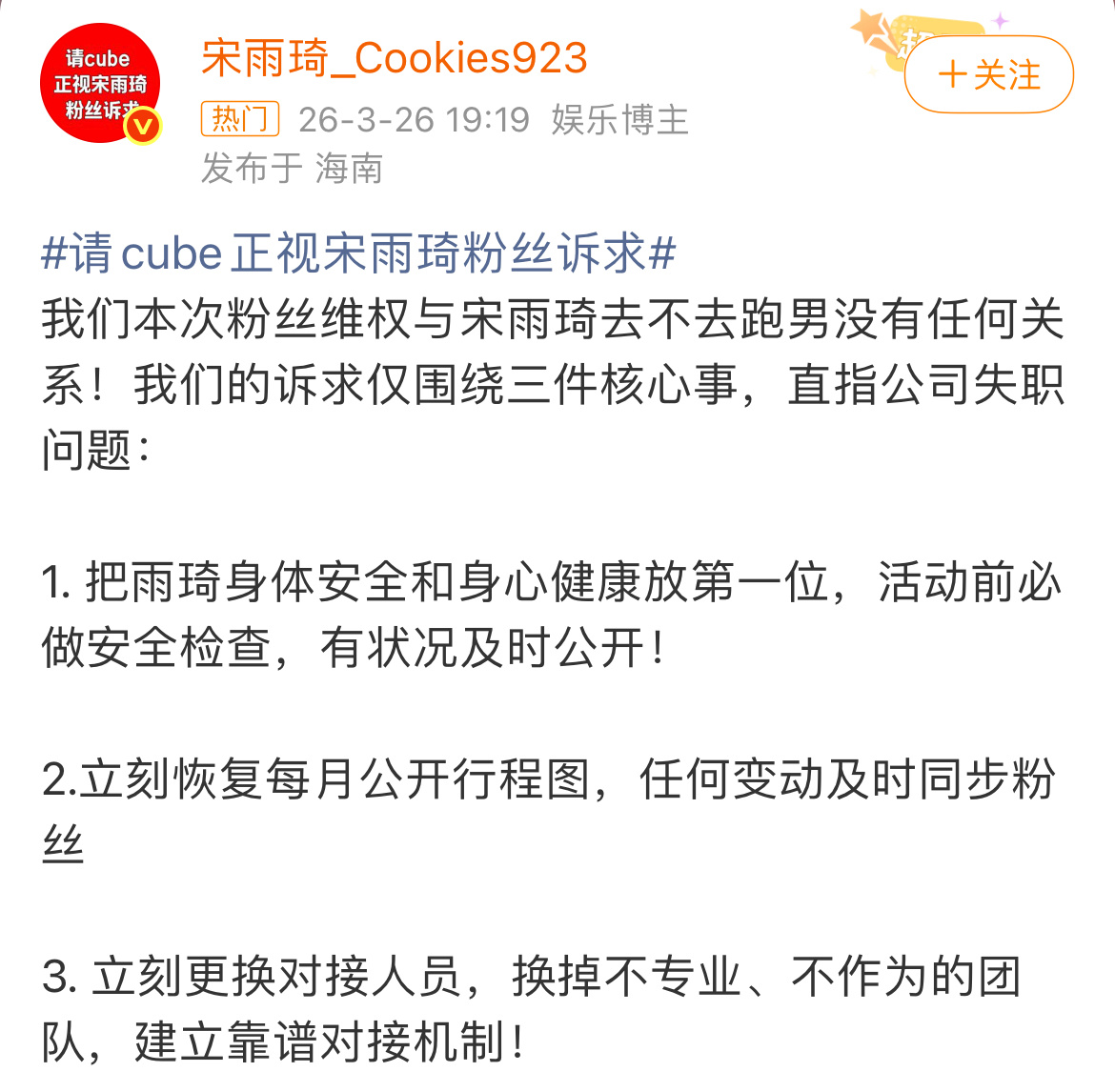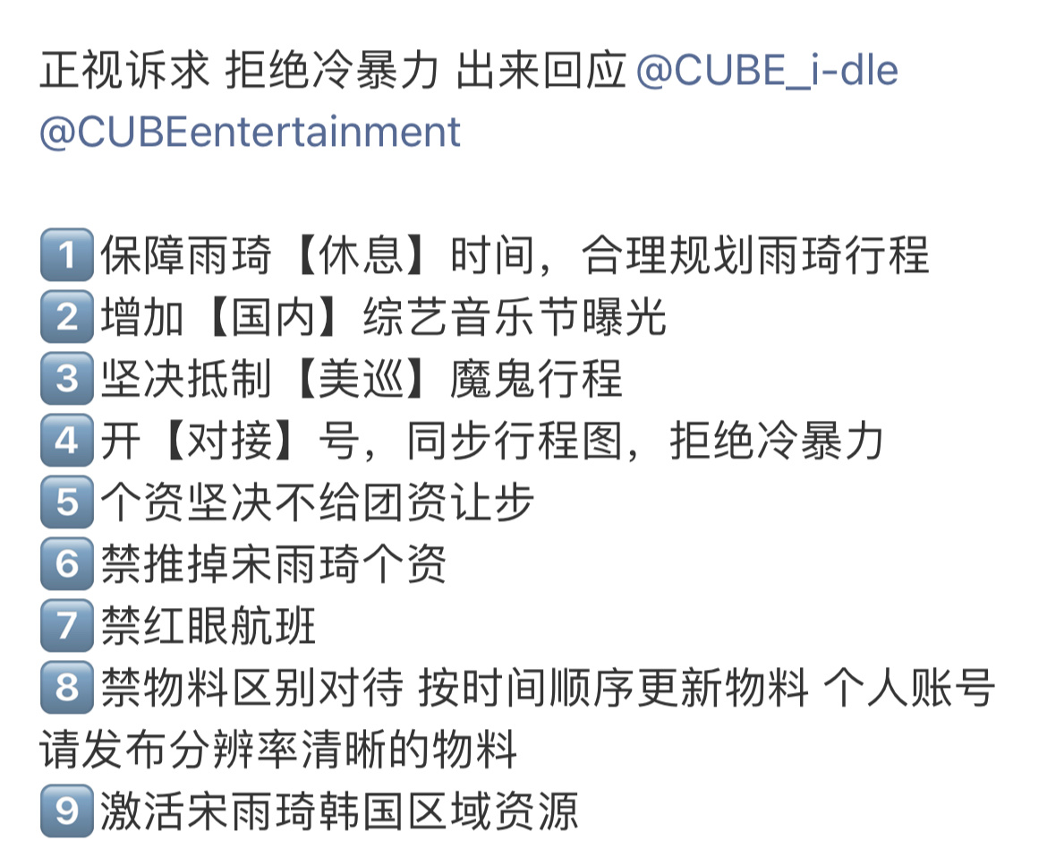 宋雨琦粉丝持续维权,希望得到cube回应请cube正视宋雨琦粉丝诉求