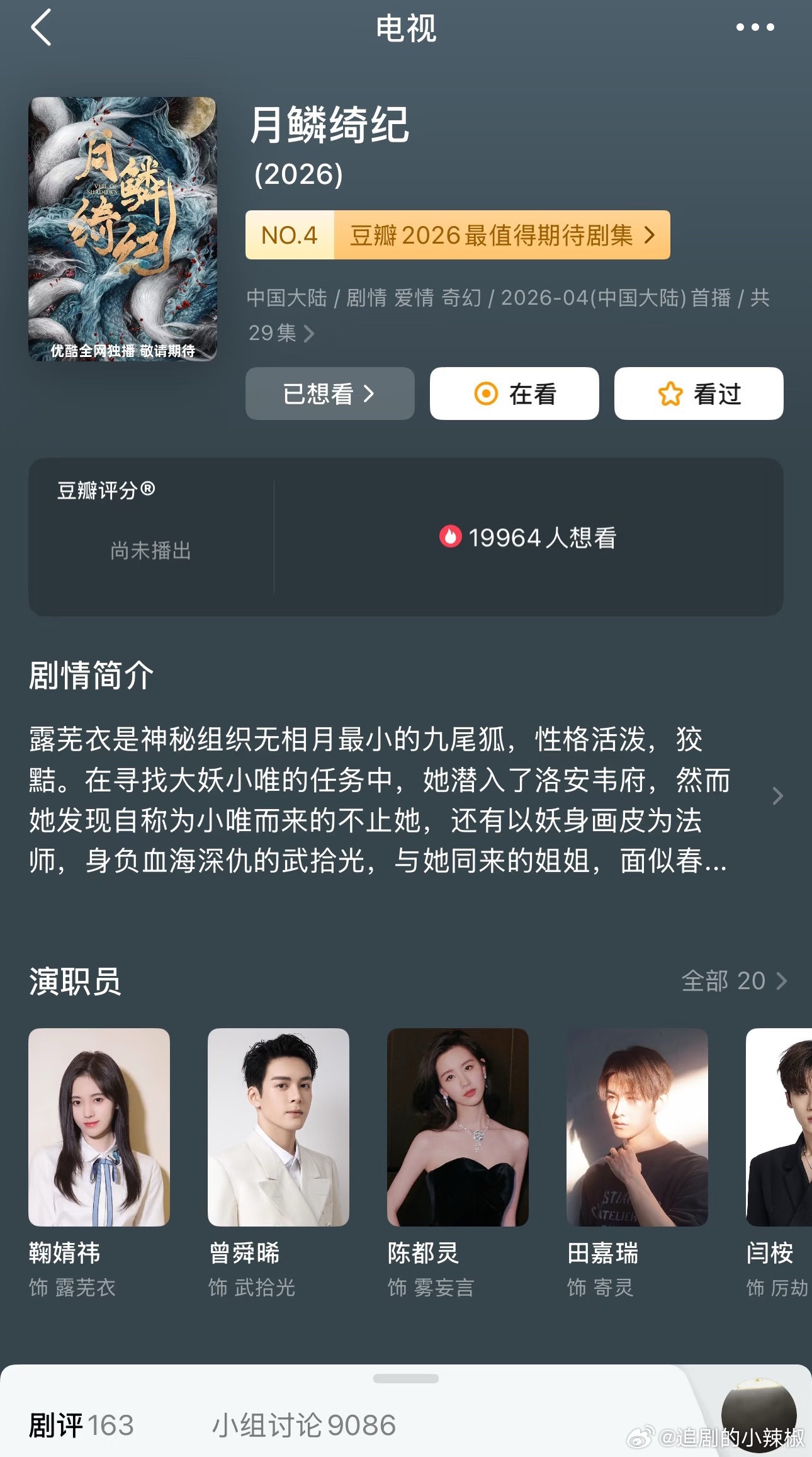 谁来心疼下《月鳞绮纪》,好端端的排播预热,物料也准备了,冷不丁无缘开年档,等到四月档结果又被撤,👖也没招了,临时拉隔壁剧来填档,一鼓作气再而衰三而竭真的要去拜拜