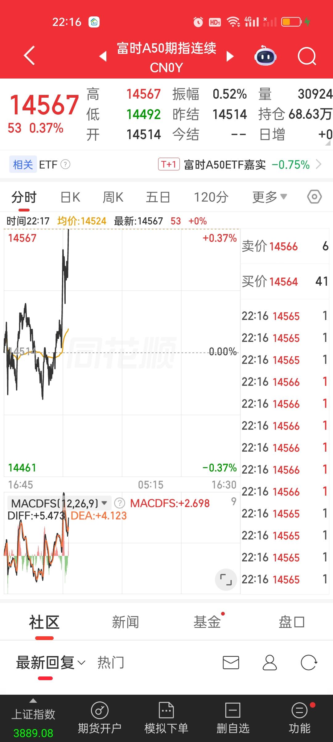 油价开始回落,外围市场也开始应声上涨。明天可能不用太悲观。恒指期货,恒科期货,富时A50期指纷纷由绿转红。不过后半夜的情况谁也说不好。