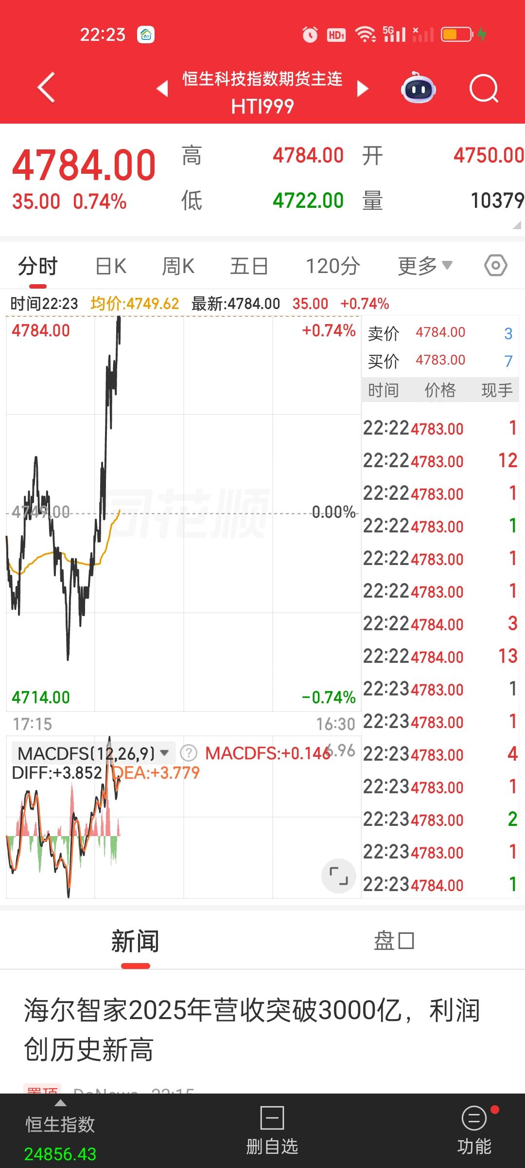 油价开始回落,外围市场也开始应声上涨。明天可能不用太悲观。恒指期货,恒科期货,富