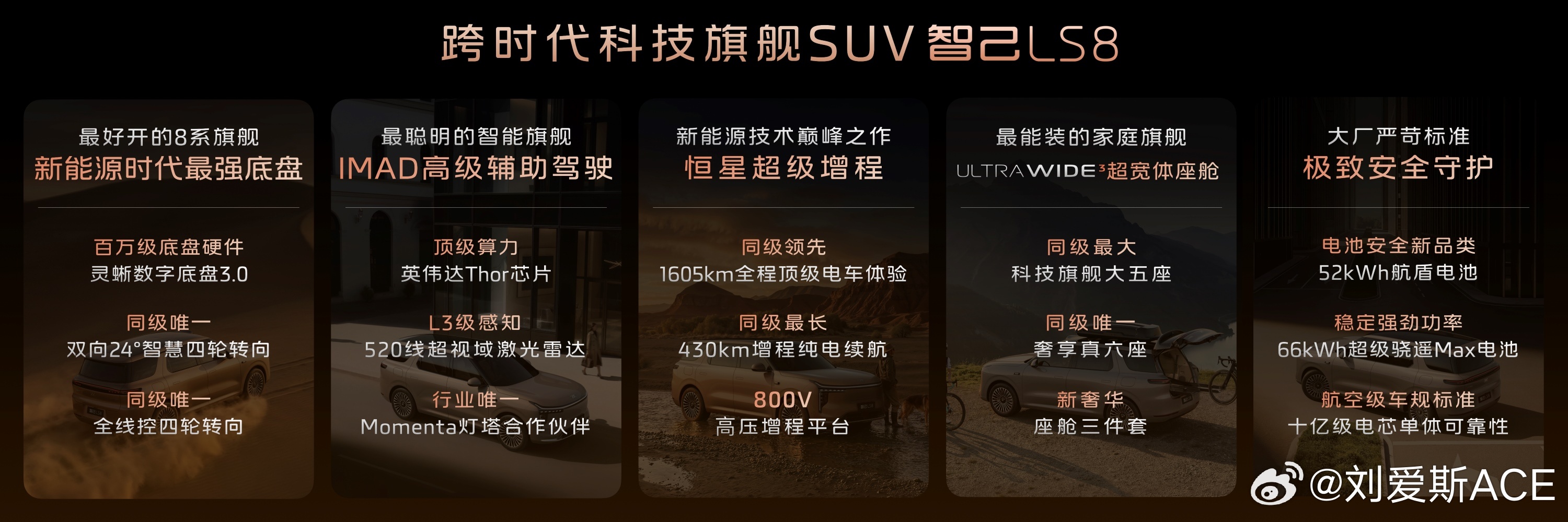 3. “超级增程”解决续航焦虑:搭载1.5T恒星超级增程系统,CLTC纯电续航最高430km,综合续航达1605km。支持800V超快充,30%-80%充电仅需12分钟。