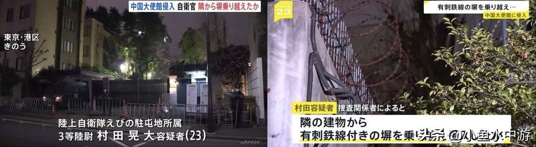 日本自卫官供称不满中国对日强硬言论,若诉求遭拒原拟自杀施压! 有关日本自卫官持刀闯入驻日中国大使馆一案有最新调查进展。 据日本警视厅在移送检察机关前的最新调查,隶属于宫崎县虾野驻屯地的陆上自卫队三等陆尉村田晃大(23岁),在案发前一日在东京都内店铺购入刀具,之后在网吧过夜,次日搭乘电车前往六本木站,再前往中国大使馆。案发前他多次在大使馆周边徘徊,寻找合适的入侵地点,最终选择从邻近建筑物翻越布满带刺铁丝网的围墙强行潜入,过程中双手多处割伤。 村田在被捕后向日本警方交代潜入动机,是因不满中国对日本的强硬言论,并要求中方改变立场。他供称无意伤害他人,只是想向大使表达意见,但若诉求得不到接纳,打算在馆内以自杀要挟对方,企图用极端手段向中方施压。 就此事件,日本警视厅昨日已指示日本全国警察,务必全面加强对日本境内外国使馆等相关设施的警戒。 (新闻源自网络,仅供参考)