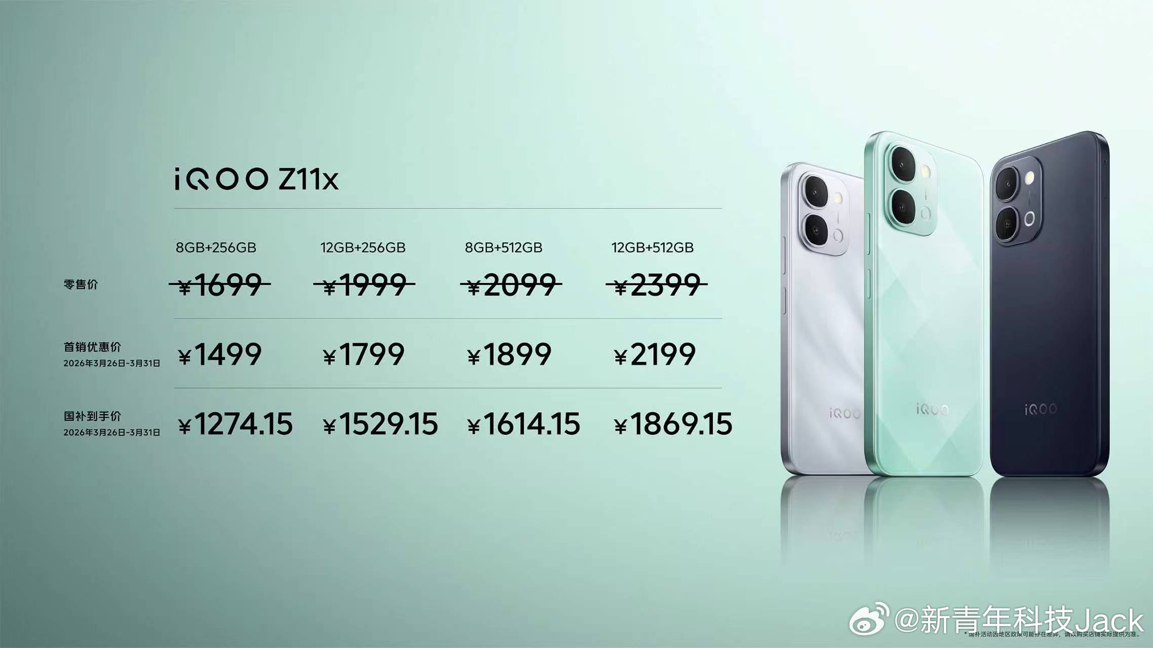 iQOO Z11首销价格挺香,1999iQOO Z11x首销价格1499,也挺