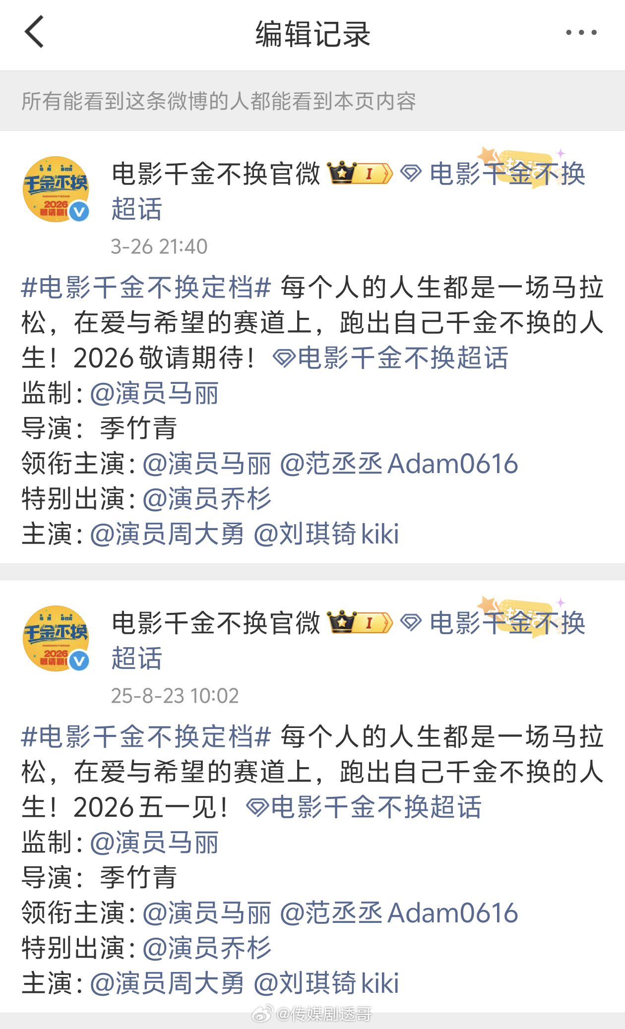 马丽、范丞丞《千金不换》疑似退出五一档,昨天都去hi6宣传了