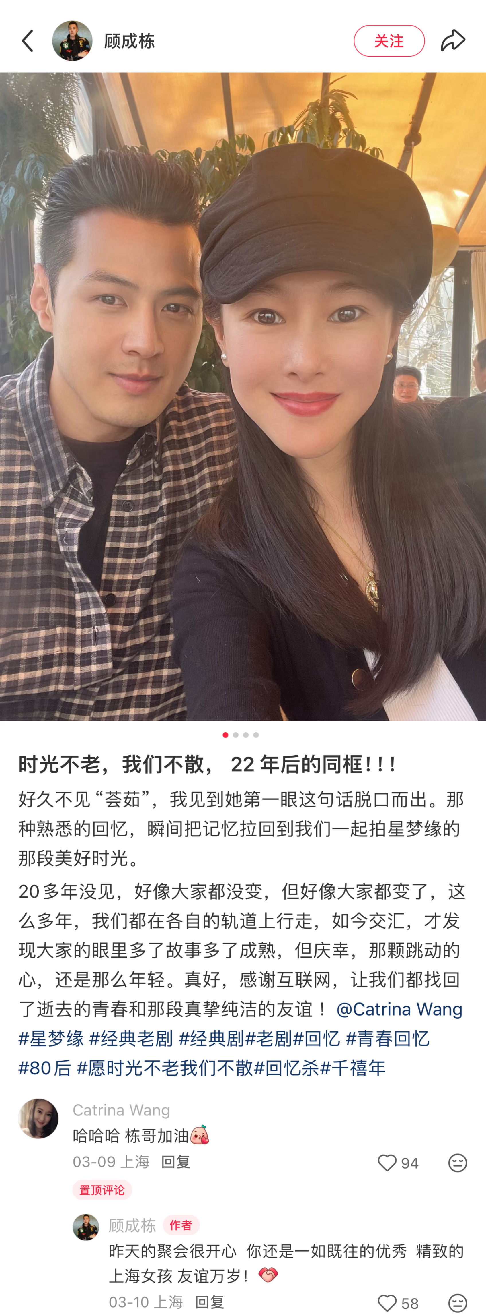 你们小时候看过《星梦缘》不?剧中的杨荟茹和劳文希现实中在一起了?关键是3月9号俩人才晒了时隔20多年的重逢合照,相处了半个多月,今天就官宣?🙉🙉(文案里都带了情侣的tag,炒作的话另说)星梦缘杨荟茹劳文希官宣星梦缘的杨荟茹和劳文希在一起了