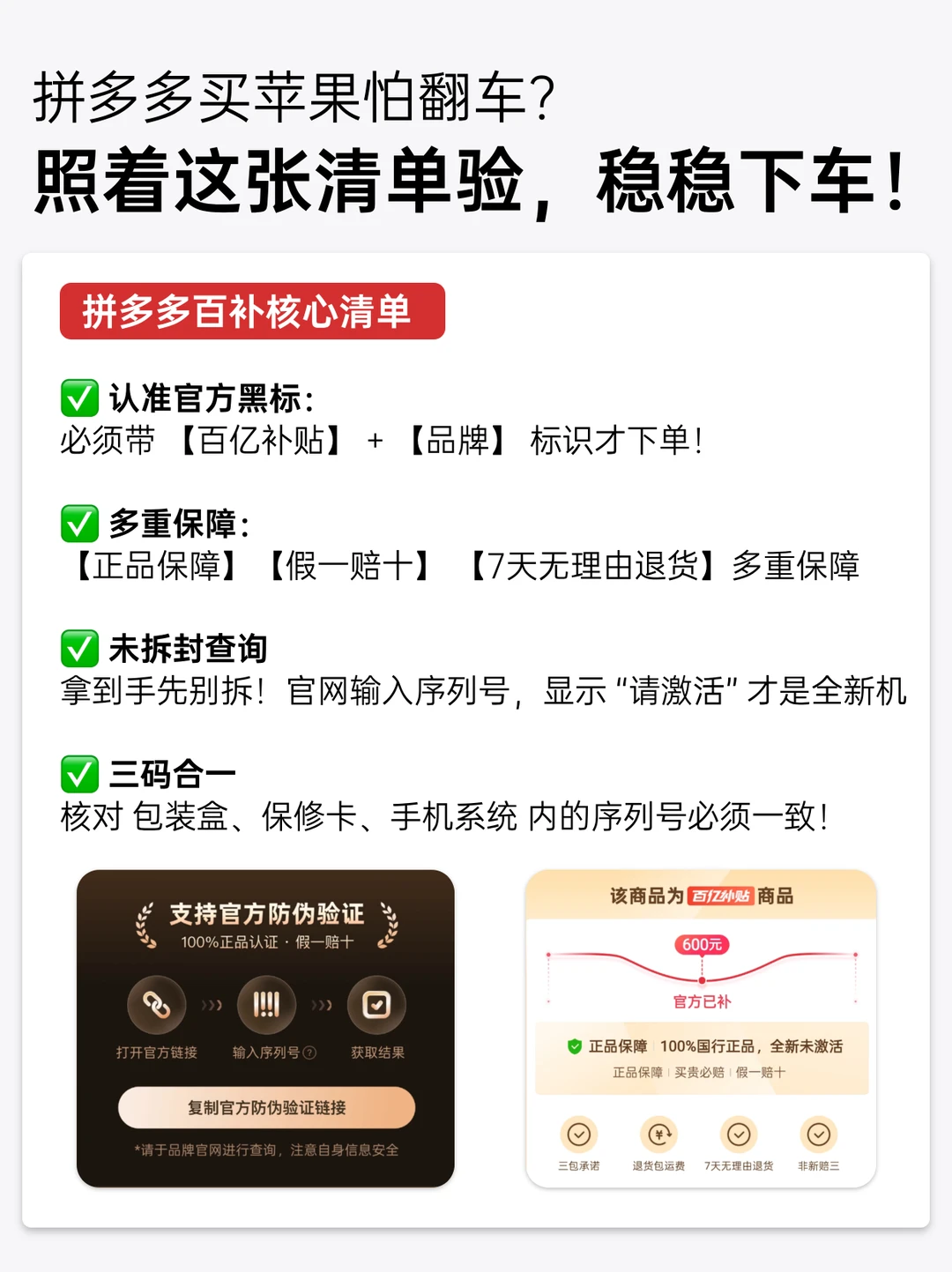 3️⃣注意三码合一:核对 包装盒、保修卡、手机系统 内的序列号必须一致!
