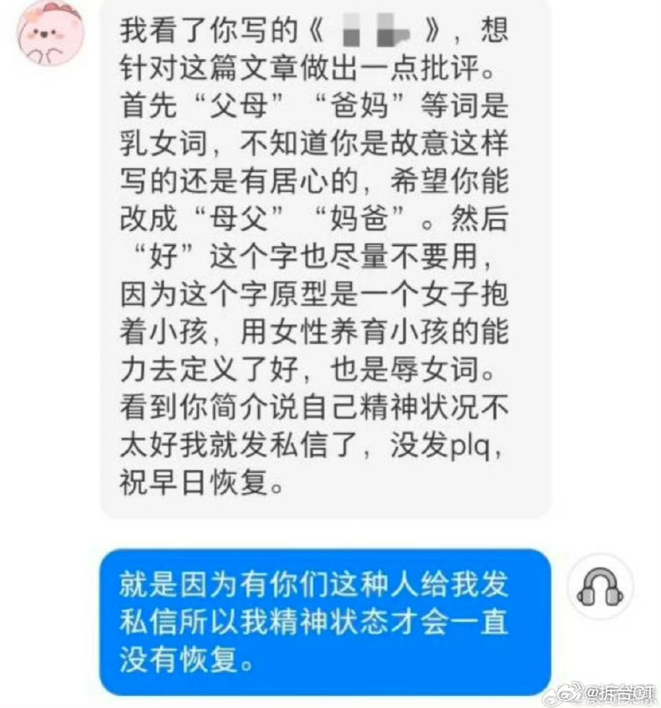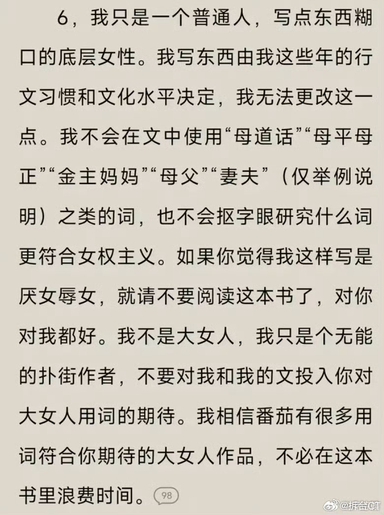 很明显,是有一伙人在强迫作者必须使用「女本位」词汇,用以迎合激女读者。