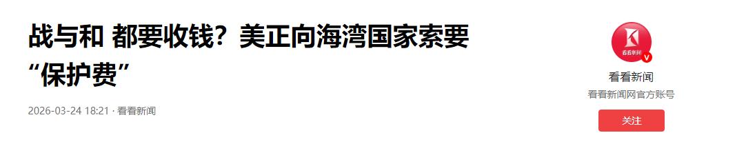 特朗普想钱想疯了吗? 美国正疯狂施压海湾国家,逼着他们“公摊军费”,特朗普政府把战争当成了买卖,直接明码标价。 方案一,美国继续和伊朗死磕,海湾国家掏5万亿美元。方案二,美国停火不打了,给个面子打五折,交2.5万亿就行。 美国的国家战略,什么时候变成了明码标价?这根本不是盟友互助,这就是拿枪收保护费,简直滑天下之大稽。 这场仗,完全是美国自己主动挑起来的。为了给以色列撑腰,美国在中东疯狂拱火,硬生生把局势推向了失控边缘。 这跟海湾盟友有半毛钱直接关系吗?根本没有,但城门失火殃及池鱼,伊朗的导弹直接砸向了沙特、阿联酋和科威特。 巴林等国的能源设施也跟着遭殃,这些海湾国家成了冲突的连带受害者,特朗普吃准了海湾国家在安全上别无选择。 面对伊朗的报复性打击,这些国家确实需要美国的军事保护伞来保命。 这就是赤裸裸的趁火打劫,大哥在外面闯了祸,转头让小弟来买单,美国的战争经济学,把流血冲突做成了稳赚不赔的生意。 无论打与不打,成本全推给盟友。美国不仅不想花钱,还想从战争里大捞一笔。传统的契约精神,早就被踩得稀碎。 这5万亿美元的账单荒谬绝伦。把沙特、阿联酋、卡塔尔、科威特、阿曼和巴林全绑一块,好几年的GDP总和才够填坑。 这分明是毫无底线的经济掠夺,要把盟友的家底彻底掏空。面对惊天勒索,海湾国家私底下的怒火早就压不住了。 阿曼第一个站出来撕破脸。阿曼外长公开炮轰,说美以袭击伊朗纯粹是为了以色列私利,这番话直接戳穿了美国“保护盟友”的虚伪面具,这张天价账单背后,藏着更残酷的现实。 那就是美国真的打不起仗了。长期陷入战争泥潭,美国的财政早就千疮百孔。特朗普逼着海湾国家“买断”战争,彻底暴露了底牌。 这恰恰凸显了美国国力相对衰落的窘境。美国急需外部疯狂输血,才能维持在中东的军事存在,或者换取一个体面的撤退。 无力独自承担战争成本,就只能把黑手伸向盟友,这种自私与霸道,展现得淋漓尽致,这种做法,注定要遭反噬。 薅盟友羊毛,只会让美国彻底失去人心,国际社会的谴责和耻笑已经铺天盖地。靠敲诈勒索维持的霸权,注定走入死胡同。