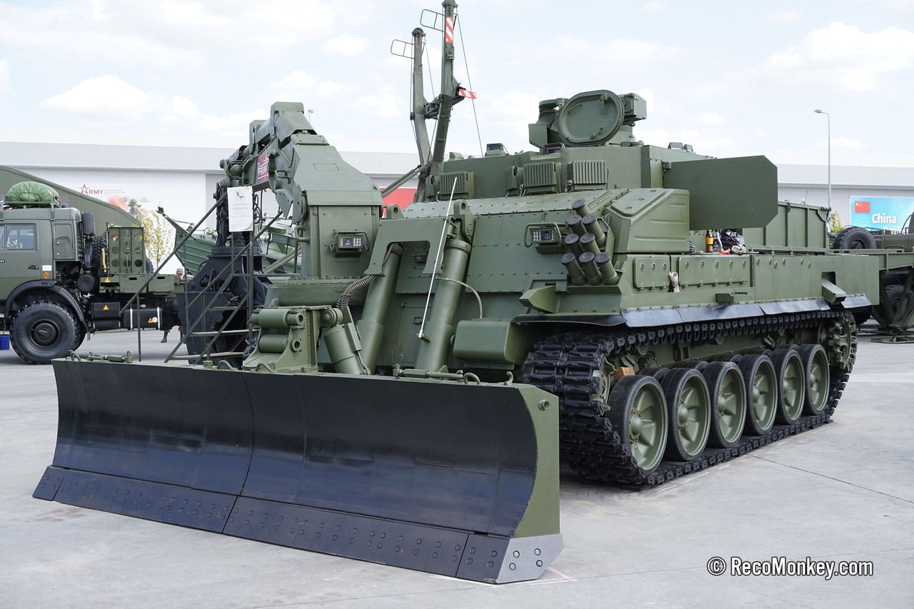 烽火问鼎计划每天认识一件兵器 俄罗斯联邦武装部队的工程兵部队正式采用了新型通用装甲工程车(UBIM),该车基于T-90底盘开发,使用1130马力发动机,续航能力为500公里。UBIM被计划用于同时取代装甲工程破障车(IMR)和装甲扫雷车(BMR)。