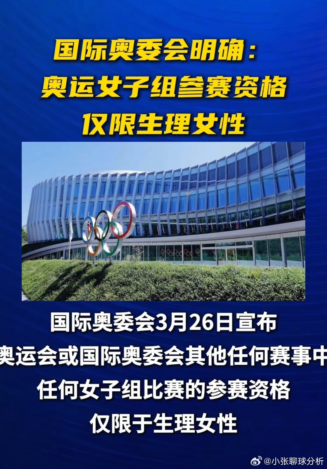 国际奥委会官宣:2028洛杉矶奥运会女子项目仅限生理女性参赛奥运女子比赛仅限生理女性