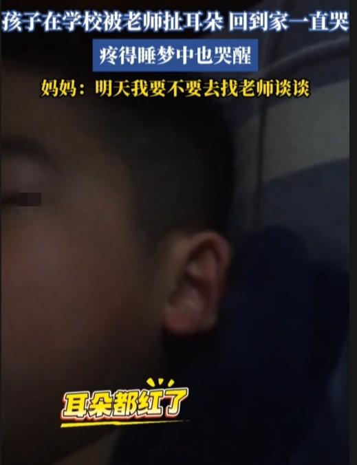 广西,一孩子在学校被老师扯耳朵,耳朵直接扯红了,回到家一直哭,疼得睡梦中也哭醒。妈妈问,明天要不要去找老师谈谈? 去,必须要去,这已经给孩子造成心理阴影。如果不妥善处理,孩子会害怕上学,也难保没有下一次。 但是,方法很重要。直接上门兴师问罪,容易激化矛盾。如果没有换班级,老师还在岗教学,就怕孩子冷落、被穿小鞋。 所以,我建议可以先询问孩子事情的经过,为什么被扯?避免是误会,也避免自己理亏。 然后直接在微信群里,拍个耳朵发红的照片,说我孩子明天请假,今天耳朵被某老师扯痛了,疼痛难忍无法入睡,明天需要去医院检查一下。然后艾特一下老师,让老师心里有数。公开留证,不辱骂、不攻击,只陈述事实。 第二天检查完,带着病历证明找老师面谈。明确强调不要接受,“孩子调皮所以才动手”这种鬼话。学生再调皮,老师也没有权利扯耳朵、伤害孩子身体。 坚持底线,必须正式公开道歉,赔偿孩子治疗费用,并且保证类似的事情不再发生。 如果老师态度不好,推诿责任,保留照片、聊天记录、病历,向校方、教育局投诉,必要时报警处理。 孩子受了委屈、受了伤,家长理应成为孩子最坚实的依靠。