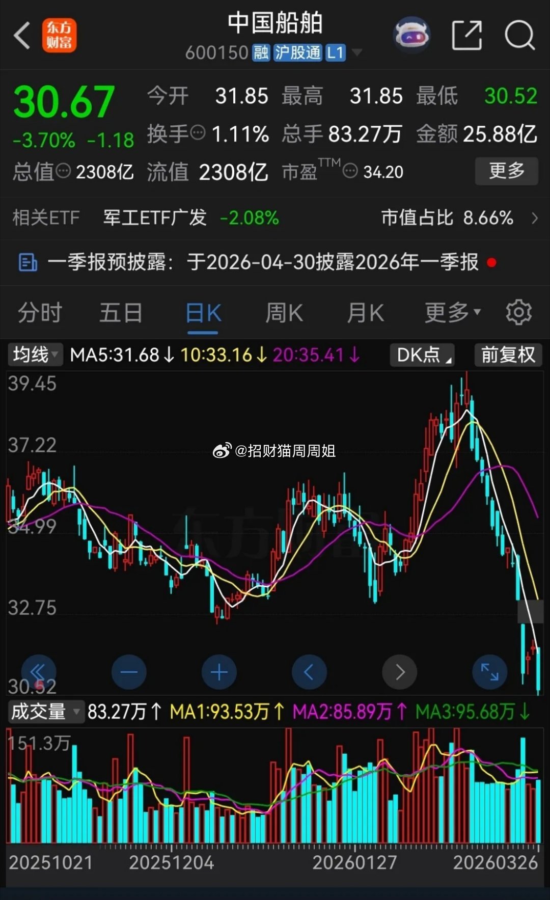 中国船舶的走势,如果不看右边部分,左边是典型的上升通道,从二月份就开始单边一路上涨,并连续收出七连阳,越走越强,量能也温和放量,而且股价拉长看还在低位,相信不少股民看到这样的走势都在暗自窃喜,以为发现了一只牛股,都会跑步进场。