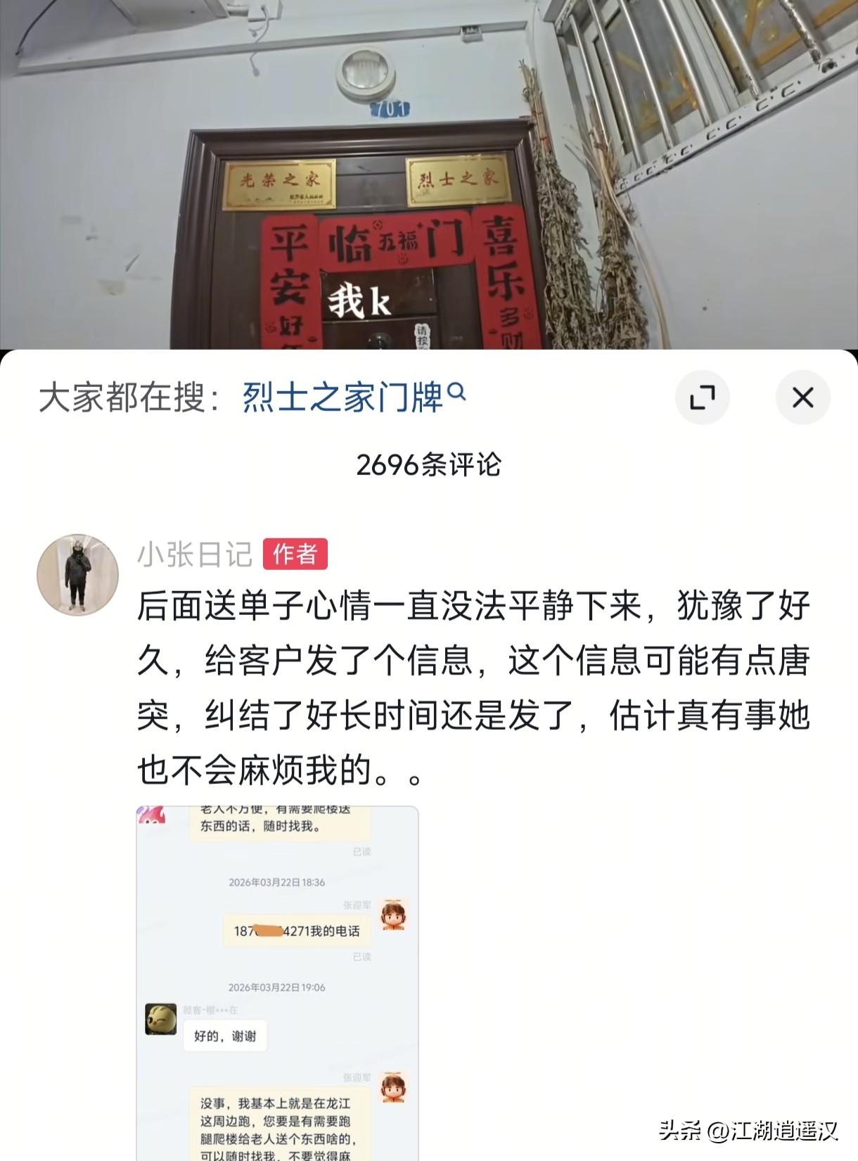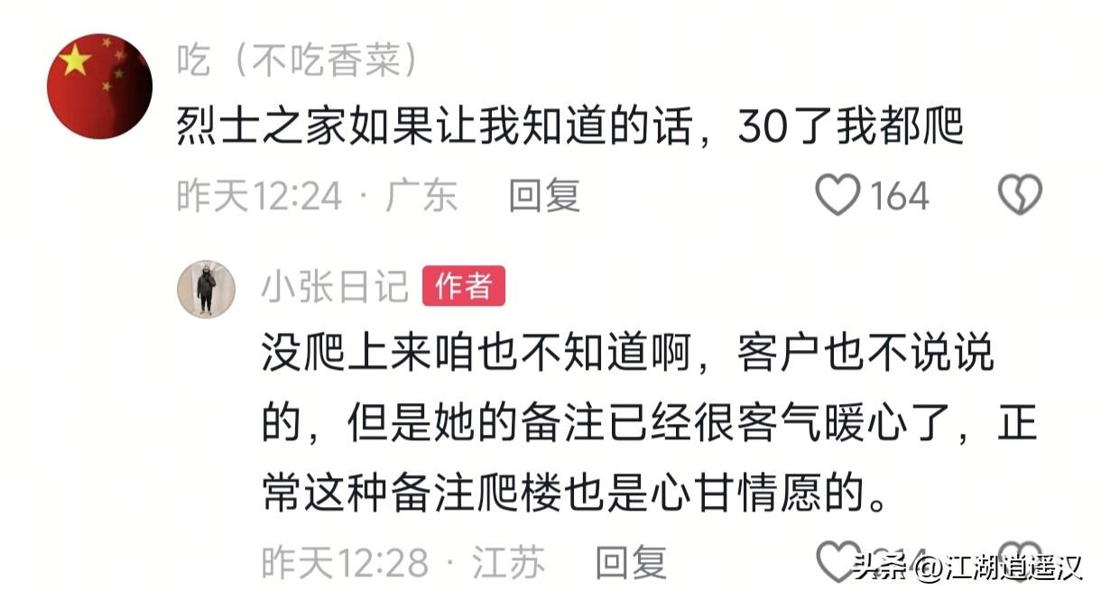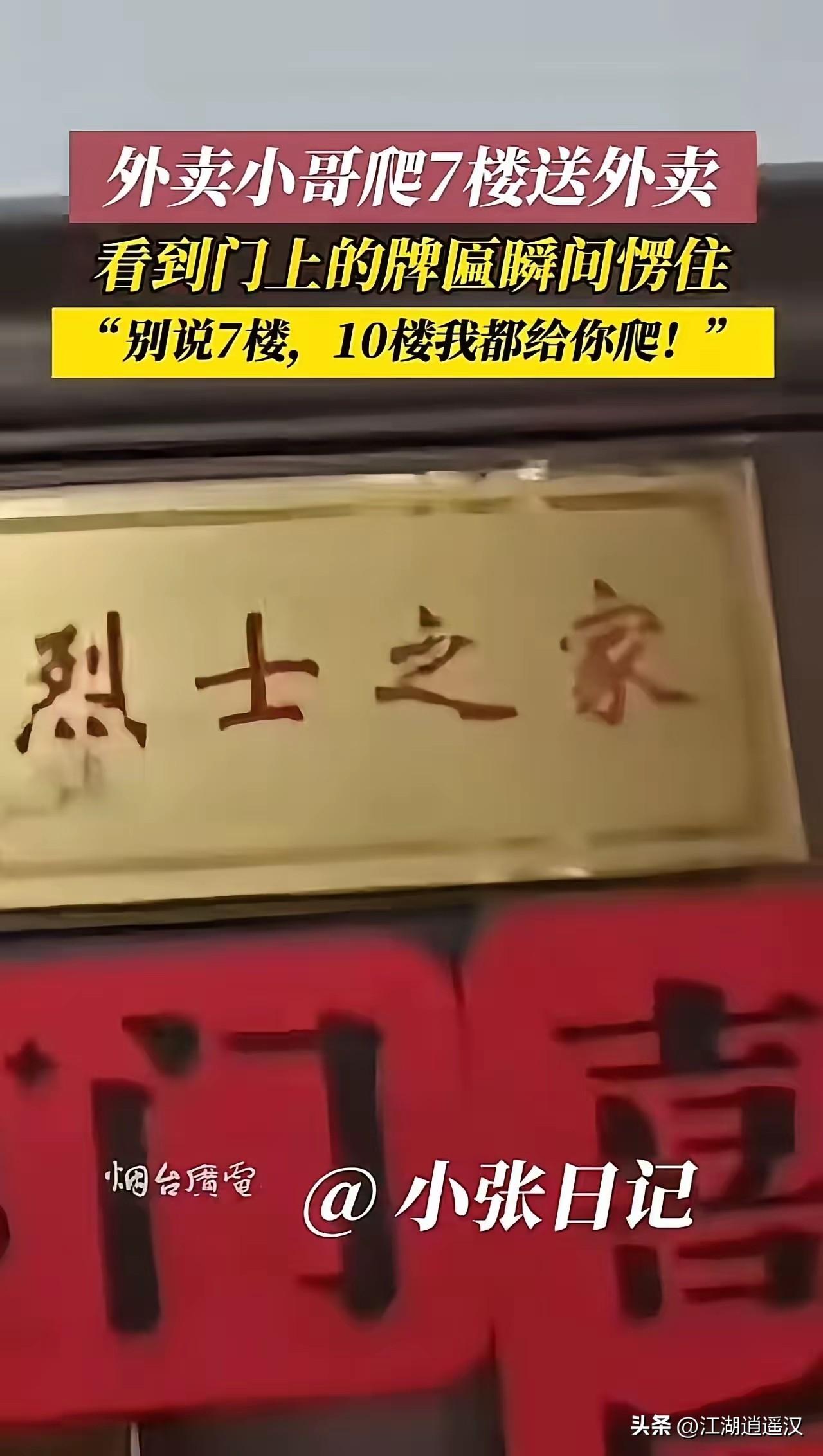 外卖小哥送餐到7楼,一抬头看到烈士之家牌匾,瞬间肃然起敬。常年跑单见多了光荣之家,可烈士之家分量太重,让人心里一沉。他不仅爬楼送上楼,还留下电话,说以后有事尽管找他。一个普通劳动者,用最实在的举动致敬英烈。这一幕虽小,却温暖了整座城市,也暖了无数人的心。