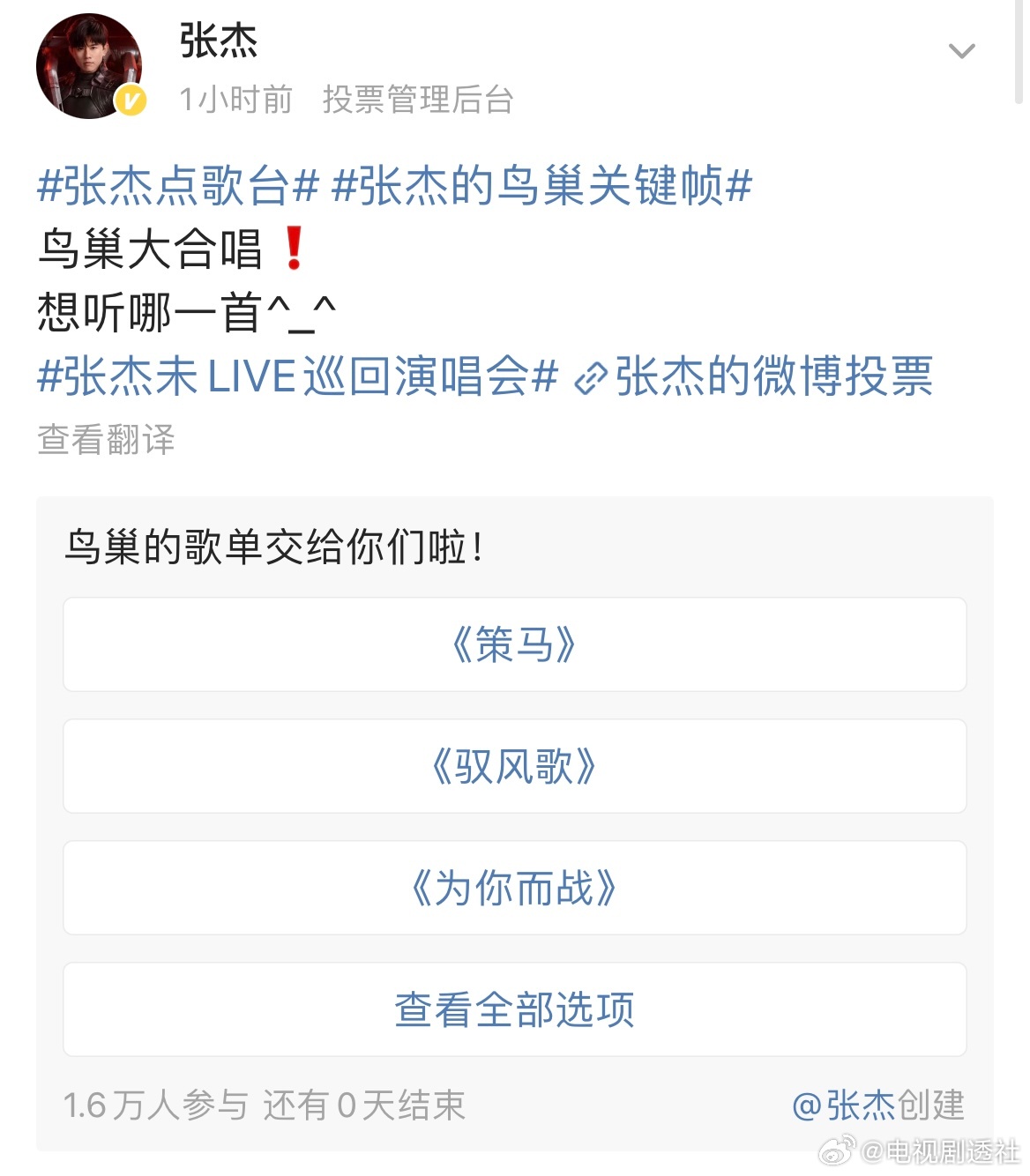 张杰问大家鸟巢大合唱❗️想听哪一首^_^