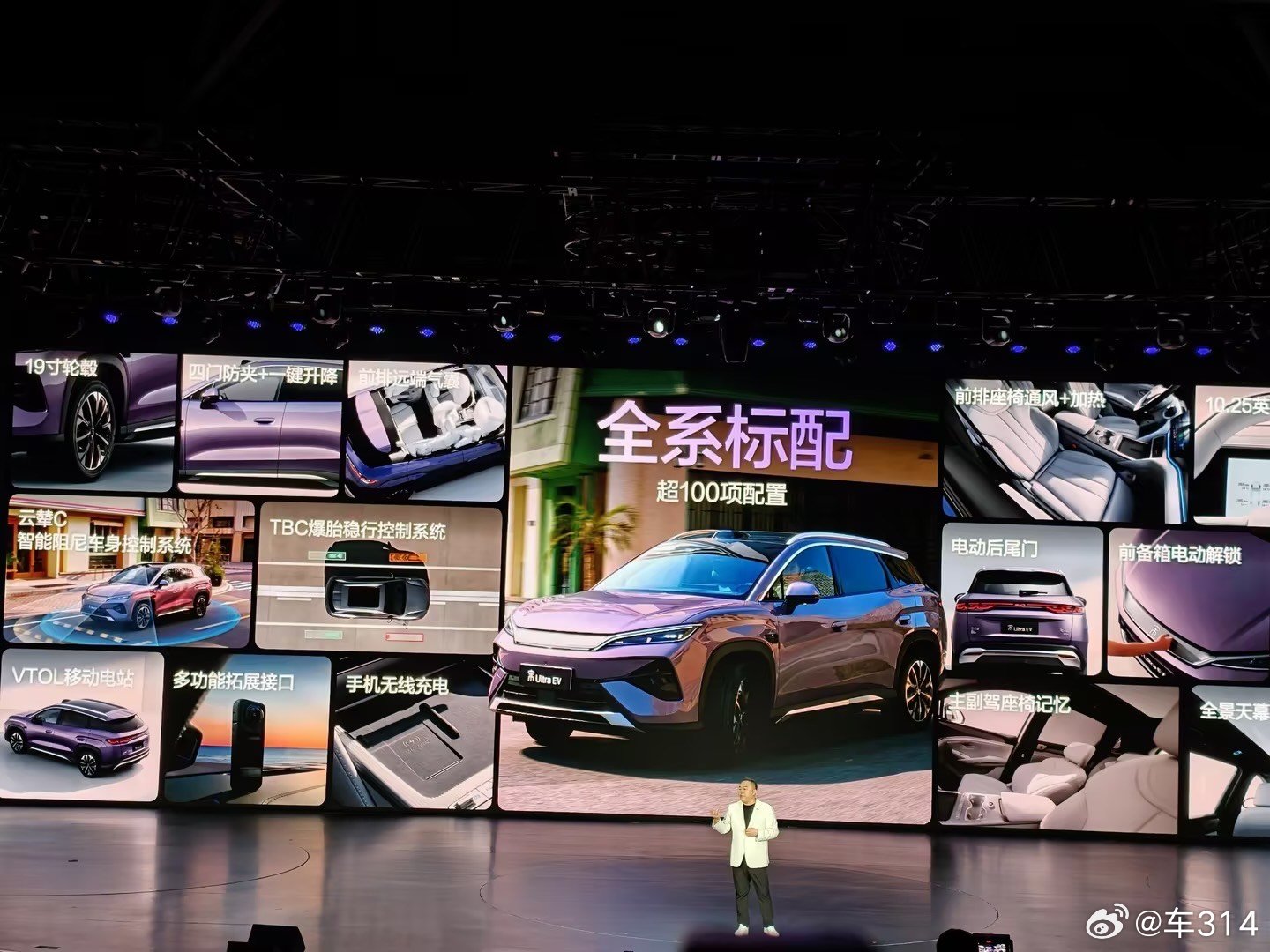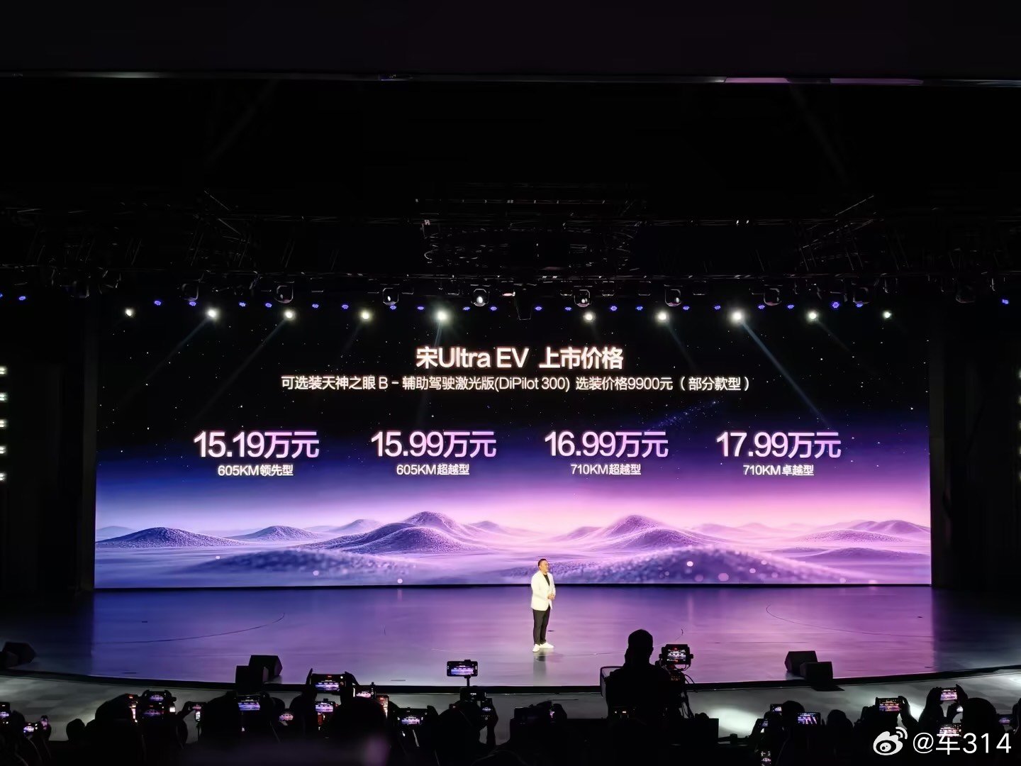 宋Ultra EV这价格,简直了嗷!顶配也只要17.99万元,增配又降价!对于这个价格呢,如果是我,那我肯定一步到位你懂的,前排座椅通风、加热、按摩,HUD抬头显示,冷暖箱之类的都给到了,还有天神之眼B等等,放以前可能25万元都不一定能买到。 当然啦,如果你只是想买个“省心到极致的纯电车”,只注重充得快,那么最低配也完全OK。 宋UltraEV买纯电选闪充suv宋ultraev宋ultra ev b级舒享大空间比亚迪