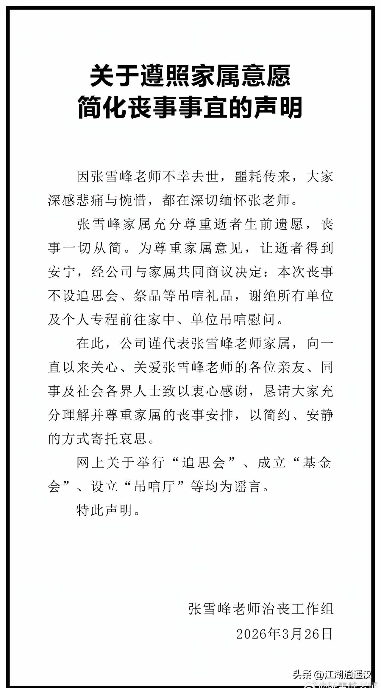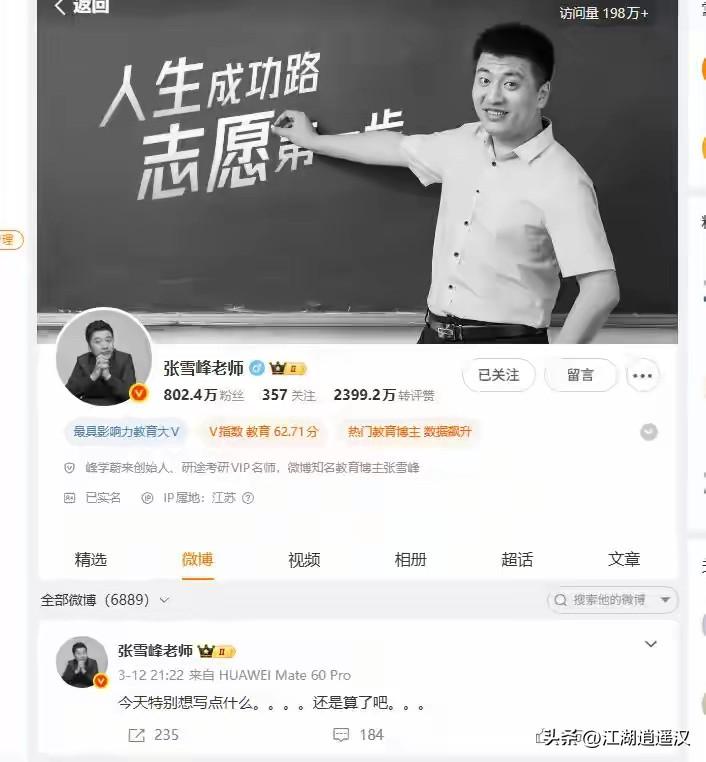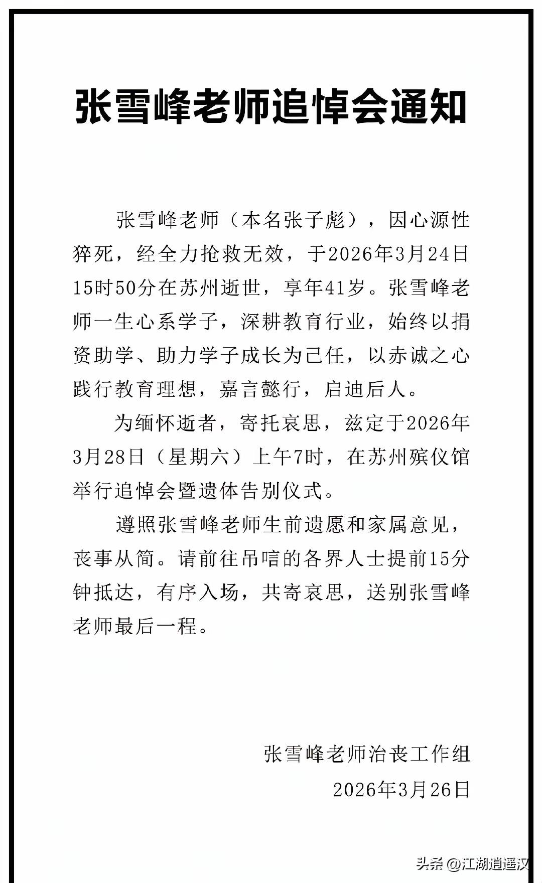 看到张雪峰公司楼下摆满鲜花,真的破防了。鲜花从来不会说谎,这是无数被他点亮过人生的人,最真诚的送别。他用最直白的话,帮无数普通家庭看清志愿、少走弯路,这份恩情很多人记在心里。 恩怨是非在生命面前本就该轻放,人走账消是最基本的善良。即便生前有分歧,此刻也该放下苛责。逝者为大,肆意嘲讽侮辱不仅失了体面,更凉了人心。世间最大的公道,从来都在人心,也在这一束束无言的鲜花里。 张雪峰求职 张雪峰创业 张雪峰离逝