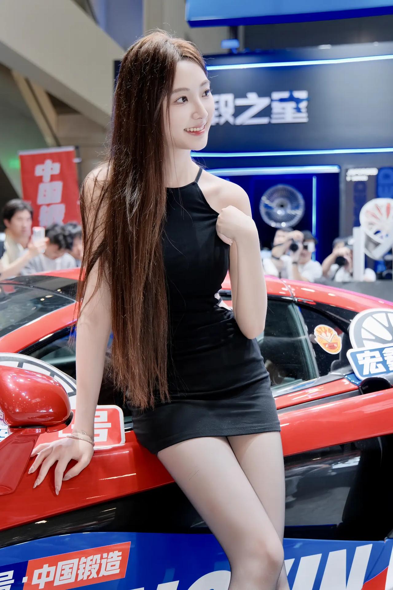 车展热裤车模小姐姐