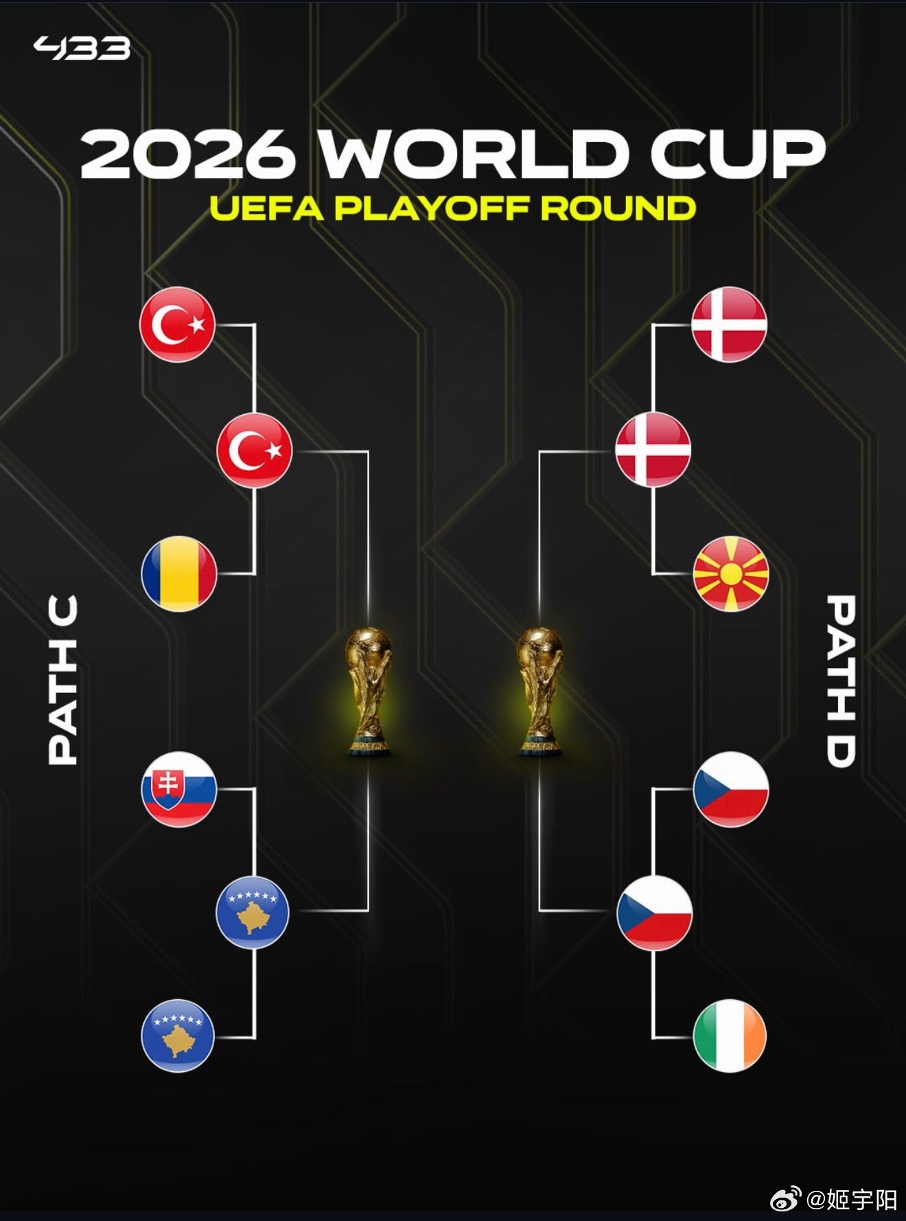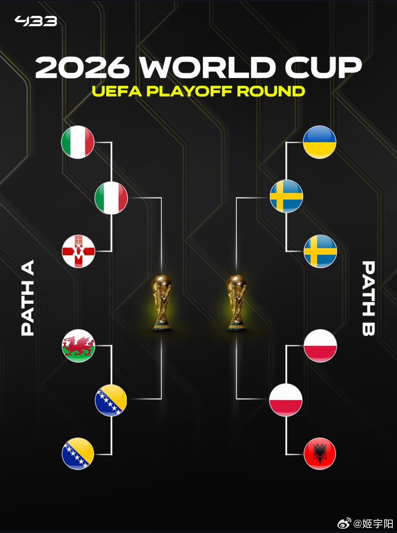 这一轮出局的欧洲球队包括了威尔士、罗马尼亚、北马其顿、北爱尔兰、乌克兰、阿尔巴尼亚、斯洛伐克、爱尔兰。他们的世界杯梦想只能等着四年后再去努力实现了。美加墨世界杯2026美加墨世界杯