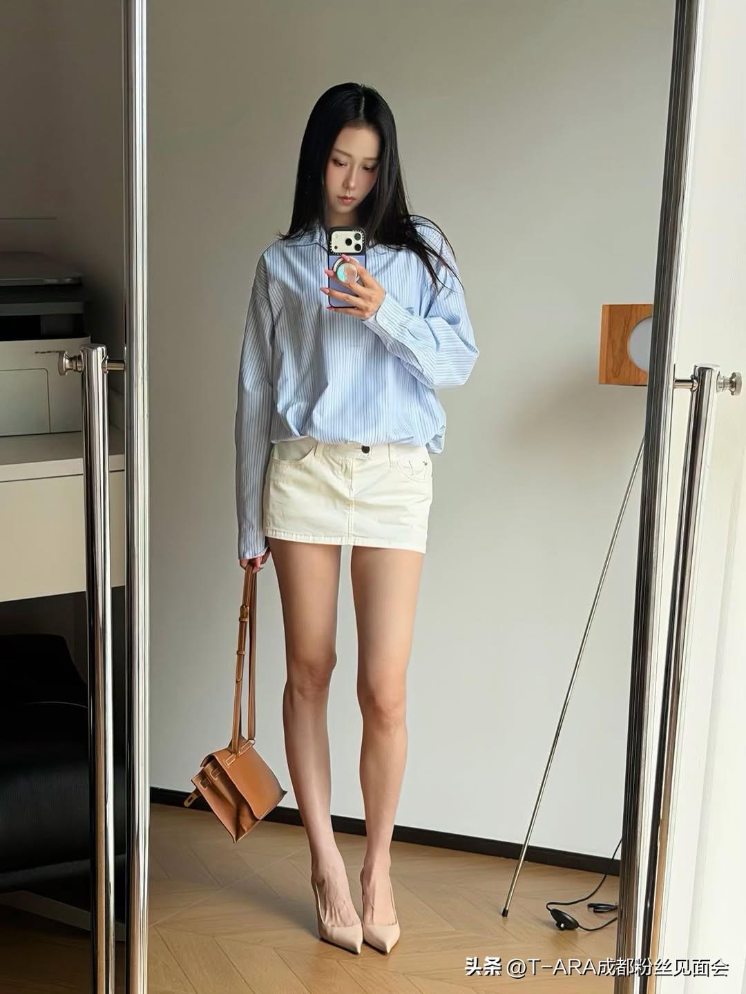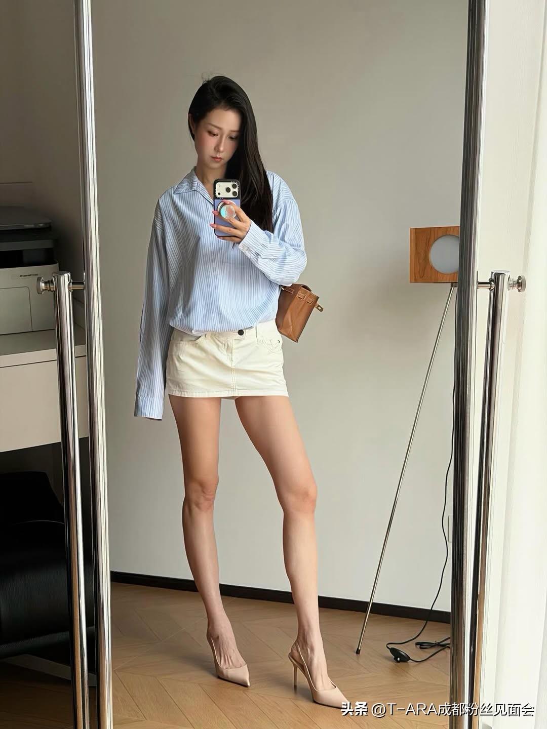 清新穿搭指南:蓝白条纹衬衫+米色短裤,轻松自在,元气满满!时尚穿搭 大长腿 漂亮小姐姐