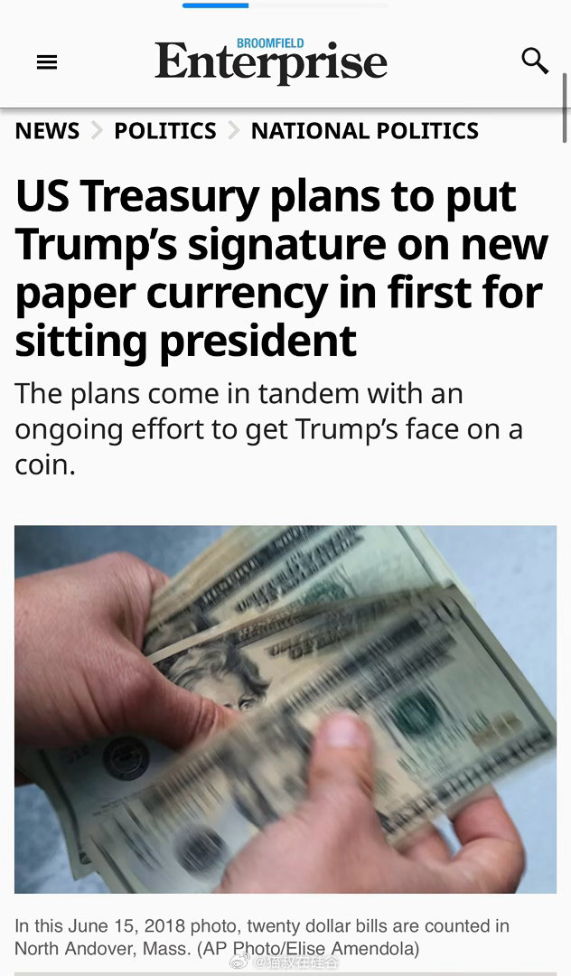 美国财政部计划在所有面额的新美元纸币上添加现任总统唐纳德·J·特朗普的签名,这将是美国历史上首次让在任总统的签名出现在流通货币上。此举打破了自1929年小尺寸纸币发行以来长达约165年的传统,此前纸币上仅印有财政部长和美国财政司长的签名。