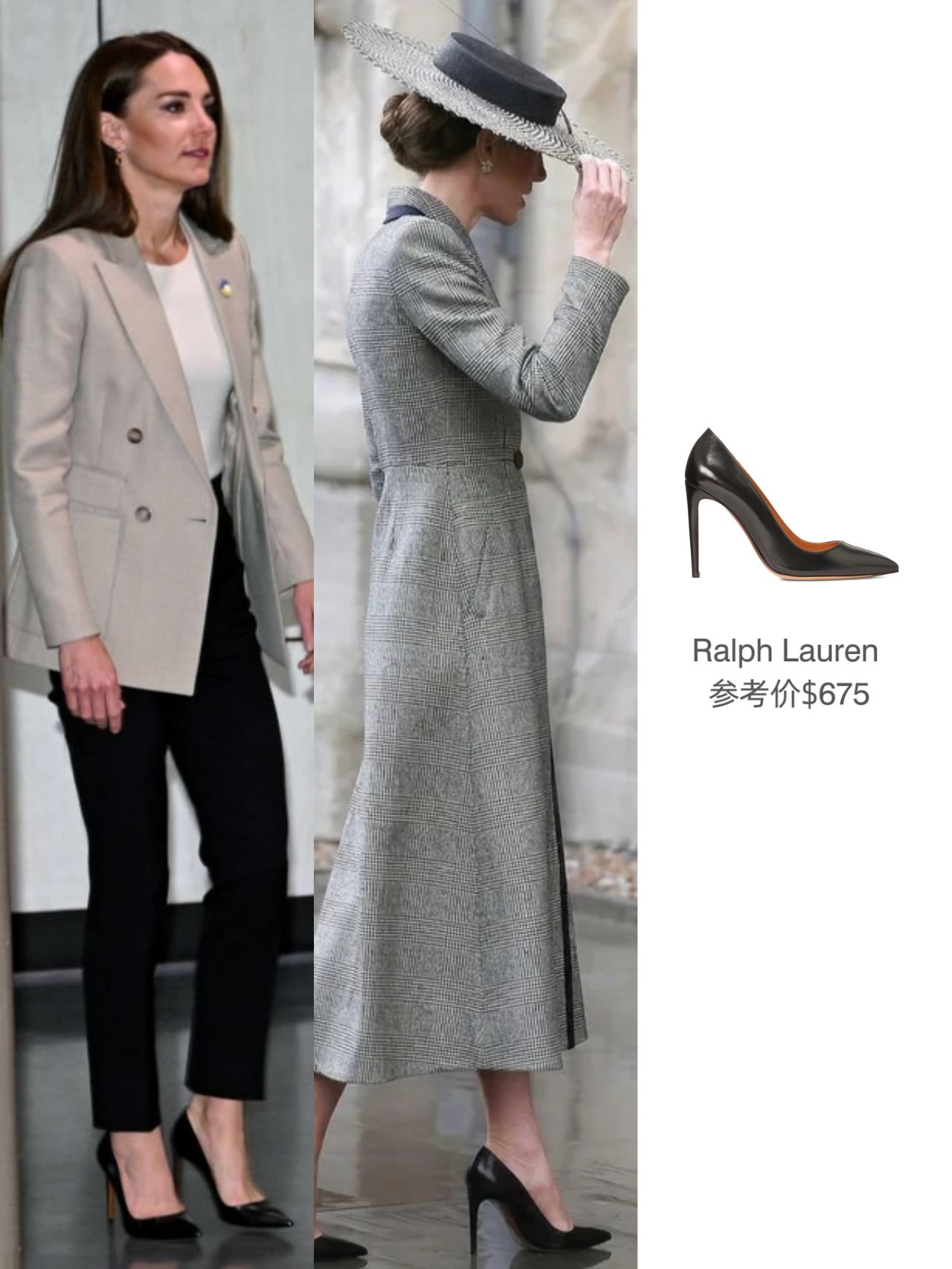 这次高跟鞋又重穿了其放在鞋柜里挺久了的Ralph Lauren(黑色款),RL的这一'Celia'系列是经典百搭款,贵圈不少人都有皮革or绒面革款,例如梅根,摩纳哥的夏琳(之后会Po下这一同款的合集)。