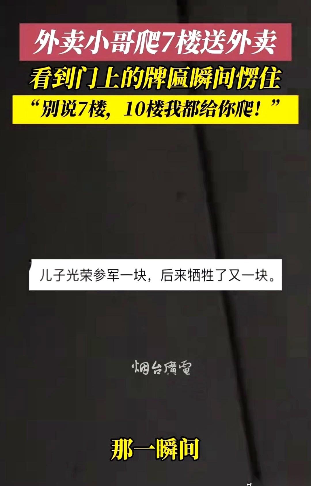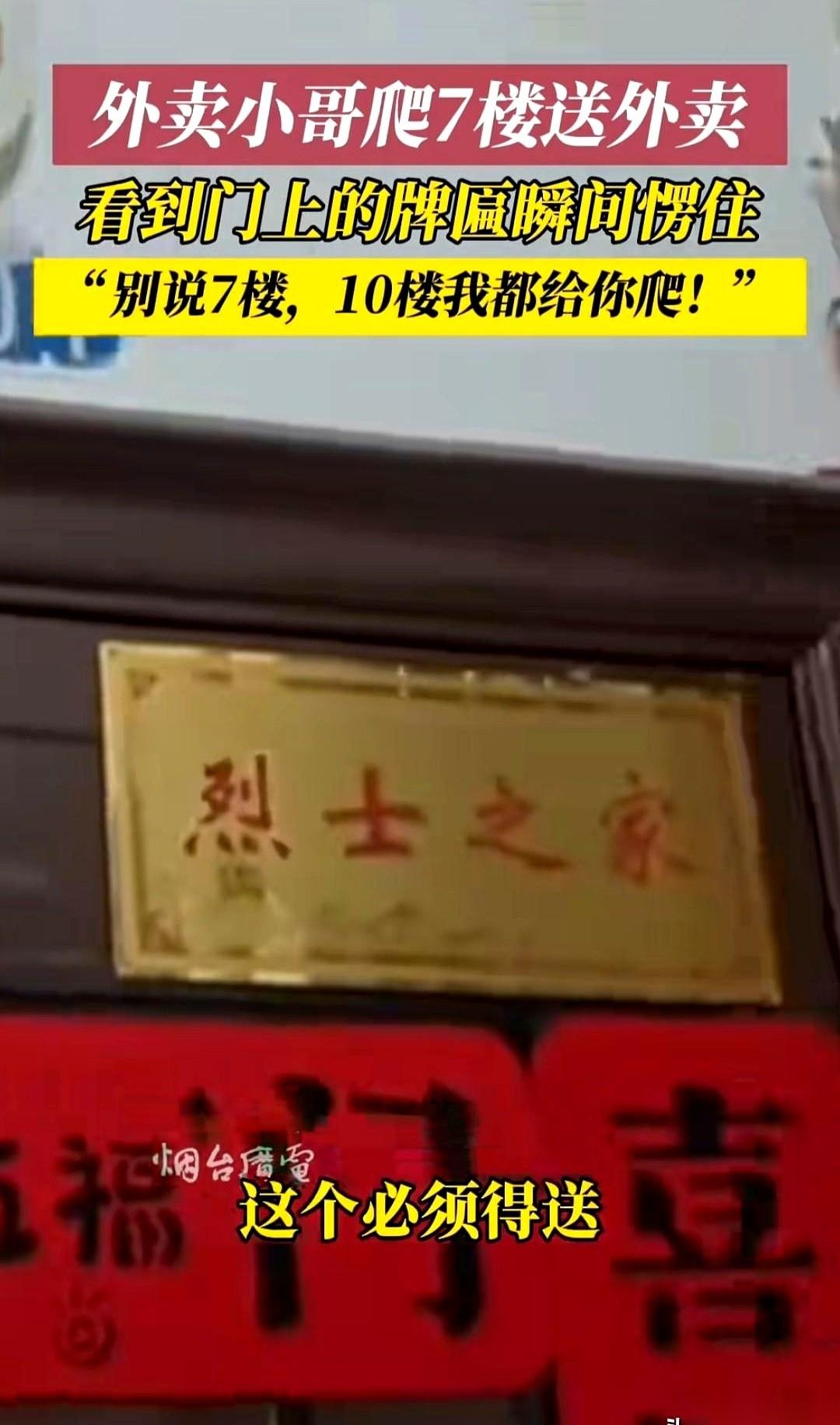 有个送外卖的小哥,接了个七楼的单子,没电梯。 一口气爬上去,楼道又窄又暗,扶着墙都能蹭一手灰。他喘着粗气,心里骂骂咧咧,感觉两条腿都不是自己的了。 好不容易挪到门口,餐盒往地上一放,抬手就准备砸门。 可他手举到一半,停住了。 整个人像被钉在原地,眼睛直勾勾地盯着门上。 门楣上挂着一块牌子,“光荣之家”,四个金字在昏暗的楼道里,亮得有点晃眼。 他悬在半空的手,慢慢收了回来。 然后,一个谁也想不到的动作。他退后了半步,低头看了看自己汗湿的衣服,伸手把衣角扯了扯平。 七层楼的疲惫,好像瞬间被抽空了。 他重新拎起餐盒,站直了,才用指关节,轻轻地、特别规矩地敲了三下门。 后来有人问他,他说,别说七楼,就是二十楼,也得这么送上来。 有些东西,真不是嘴上说说。是爬了七层楼累得像条狗,还愿意为你退后半步,整理一下衣领。