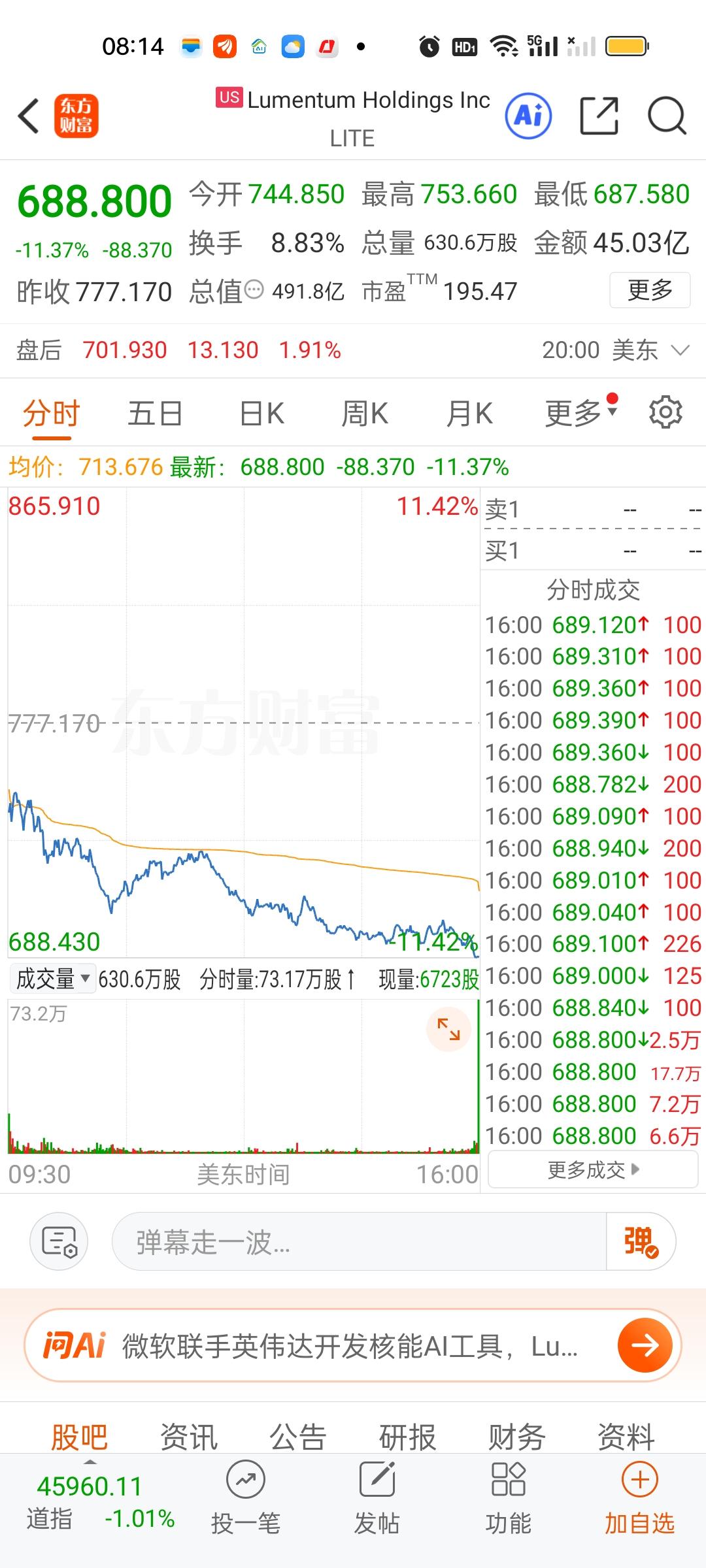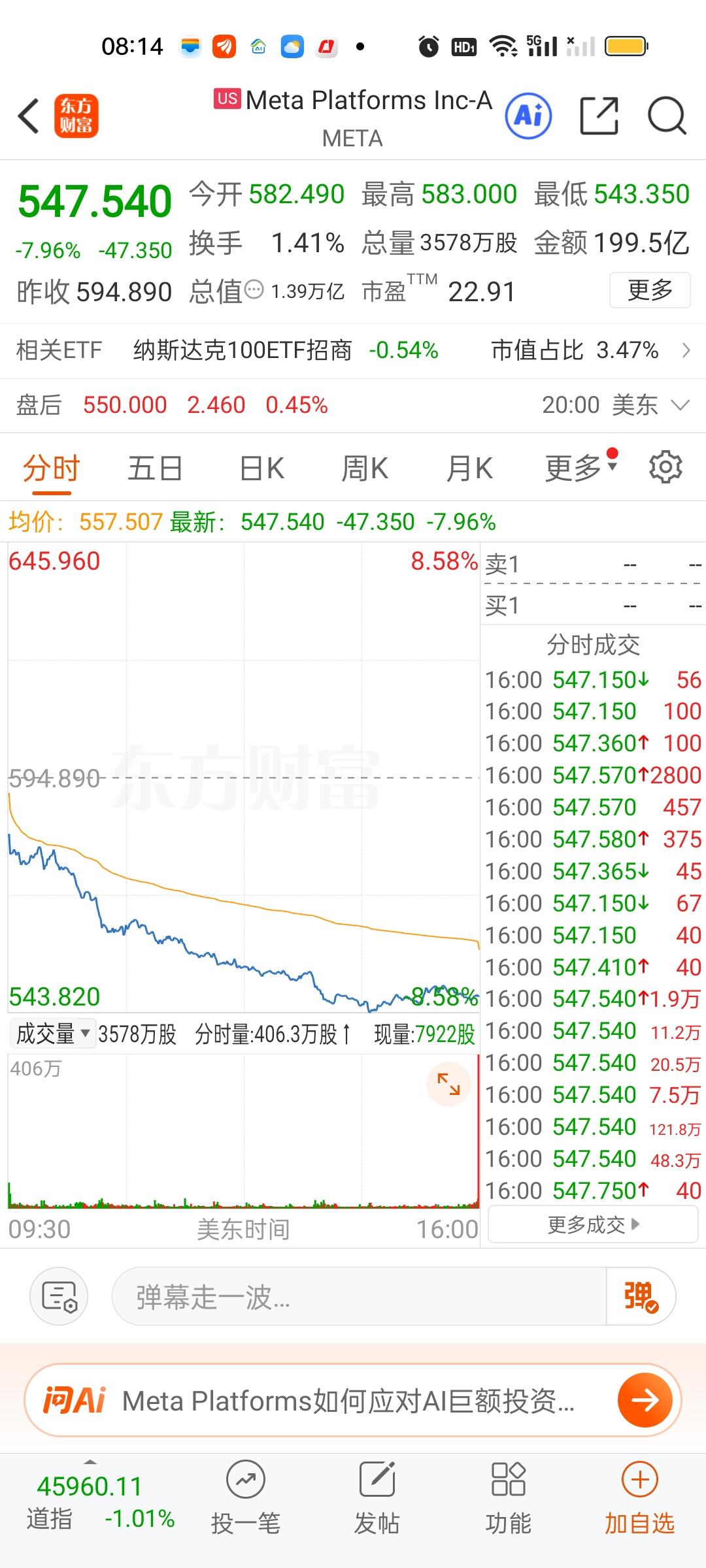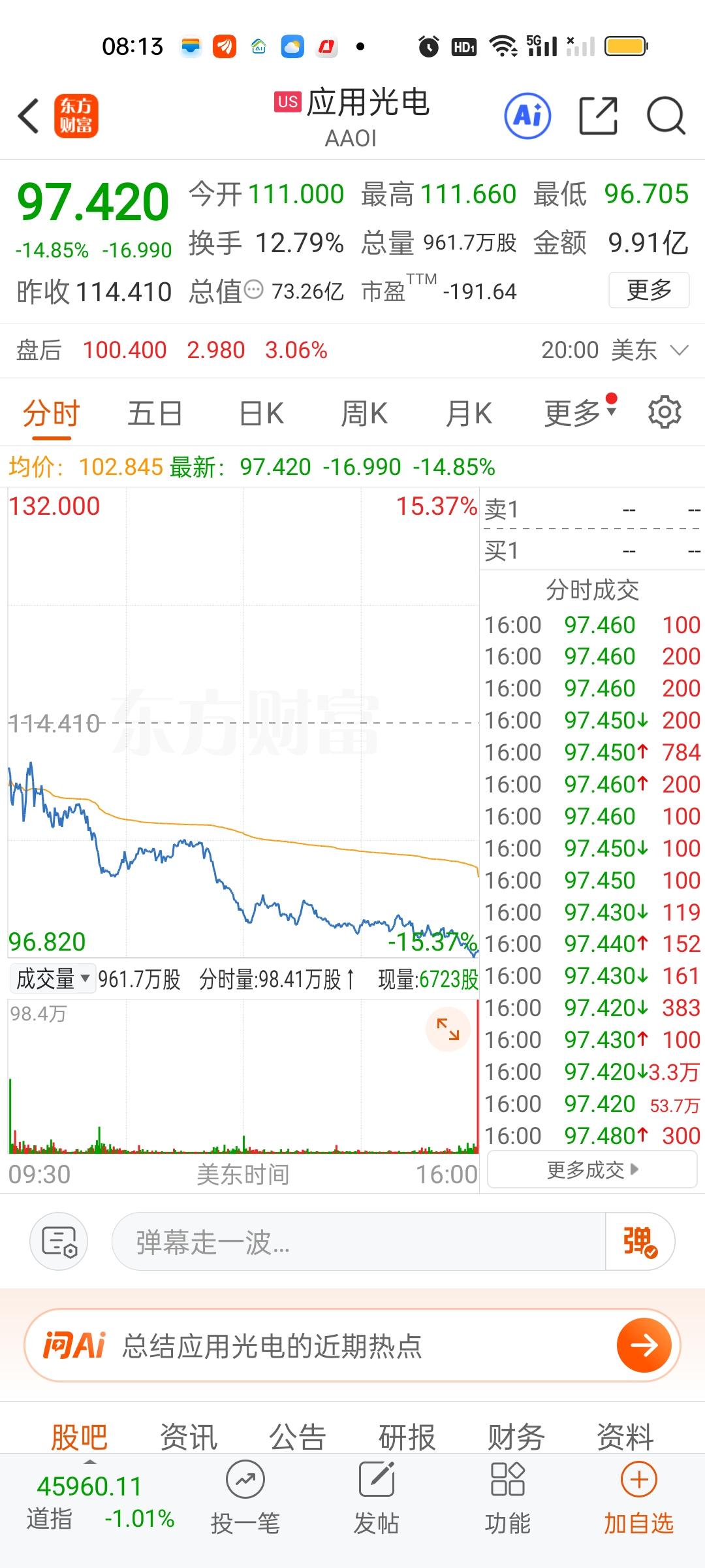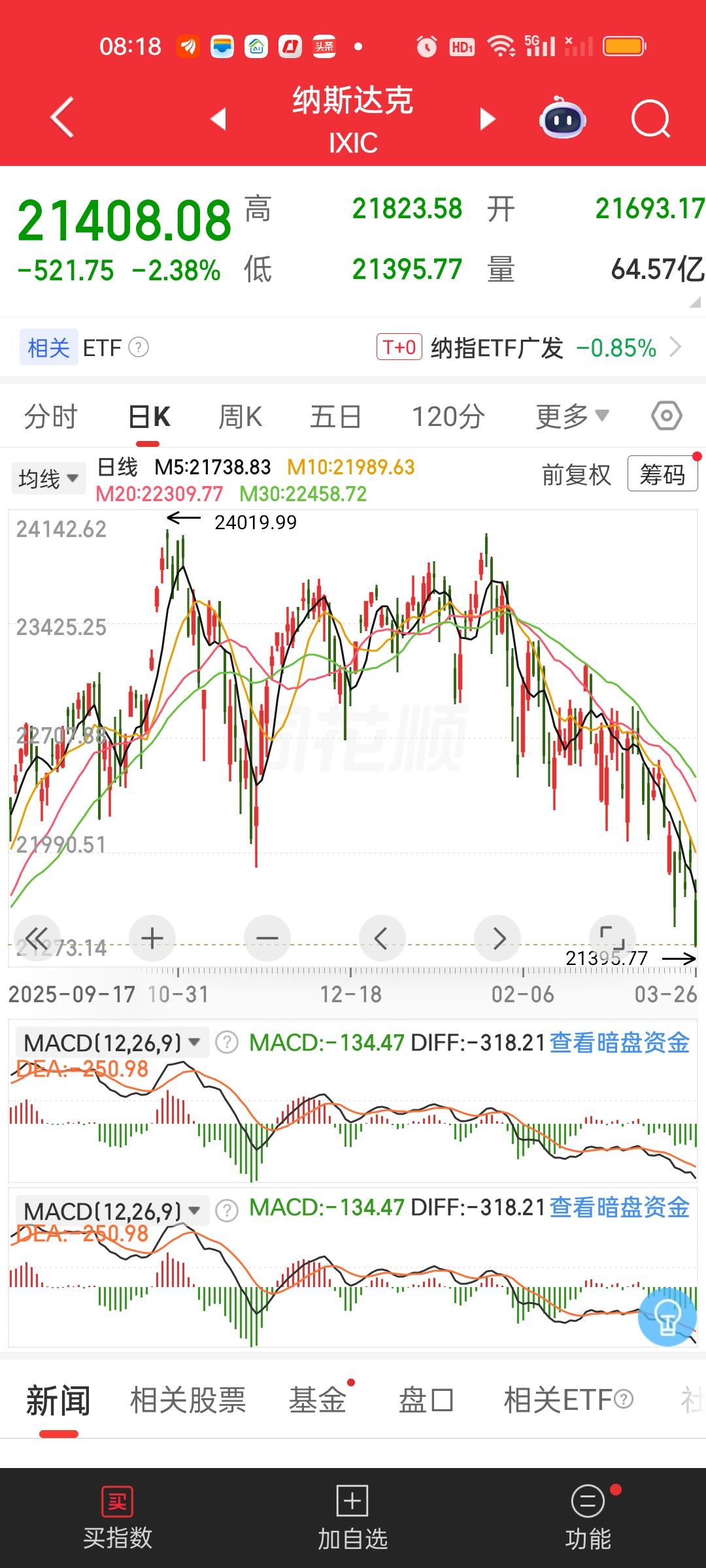 一觉醒来美股科技股彻底崩了,不知道会不会传导到我们的科技板块。纳斯达克指数收盘暴跌521点。指数再创半年来新低,多只个股跌幅在10%以上,重灾区来自通信光模块,商业航天,存储芯片,半导体芯片,机器人等。纳斯达克如此巨大的跌幅,确实很罕见。