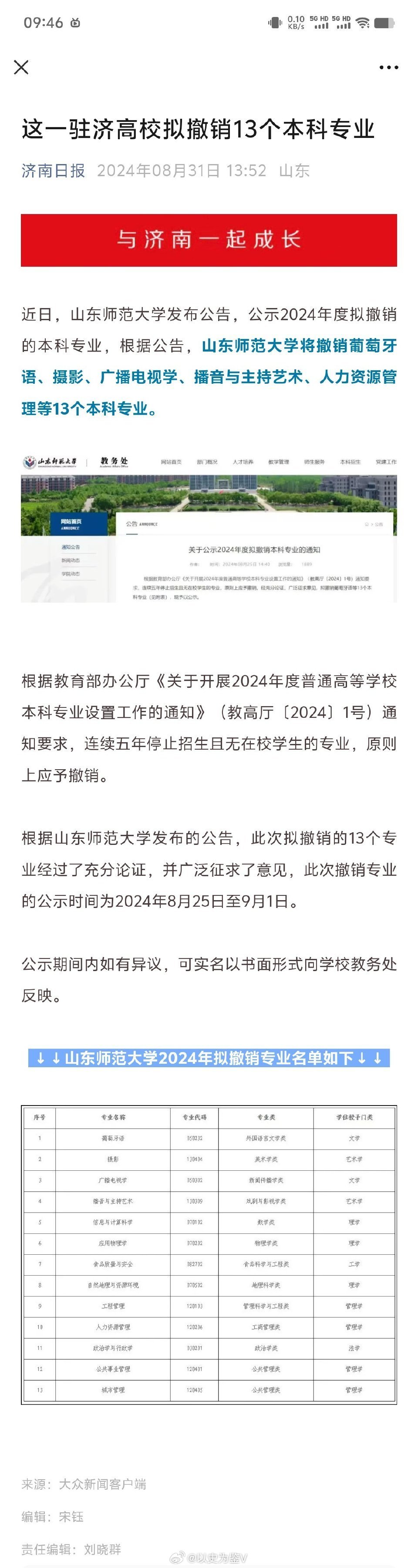 另外还有信息与计算科学,应用物理学,自然地理与资源环境等理科专业山师拟撤销13个本科专业