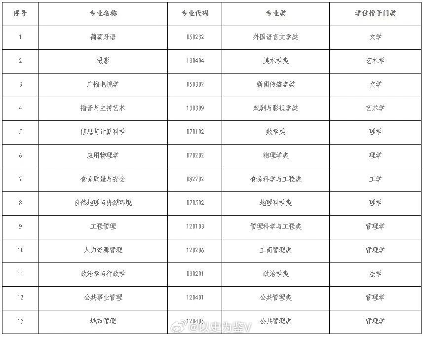 其中打头的就是这次新闻里说的人力资源管理,广播电视学,播音主持,葡萄牙语等文科;