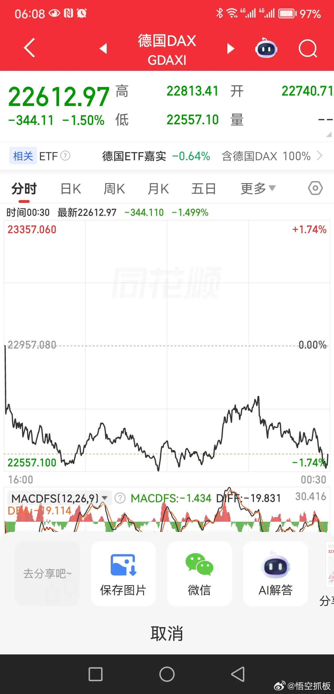 A股马上要开盘了,欧美股市全线下跌,A股不出意外大概率这样走一觉醒来看了一下发现夜盘的欧美股市全线下跌,下跌的幅度很大。欧股里德国DAX下跌1.50%